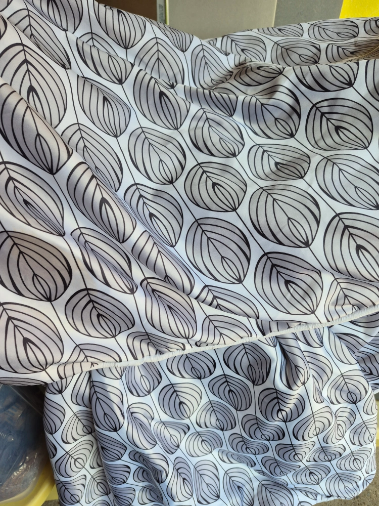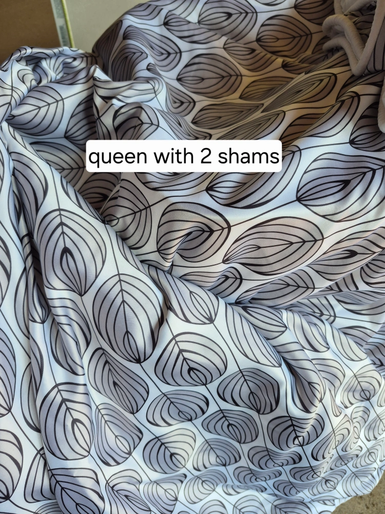 Selling a queen-size bedding duvet set that comes with two shams. The set features a stylish leaf pattern in black and white. It's in great condition and ready to add a touch of elegance to your bedroom