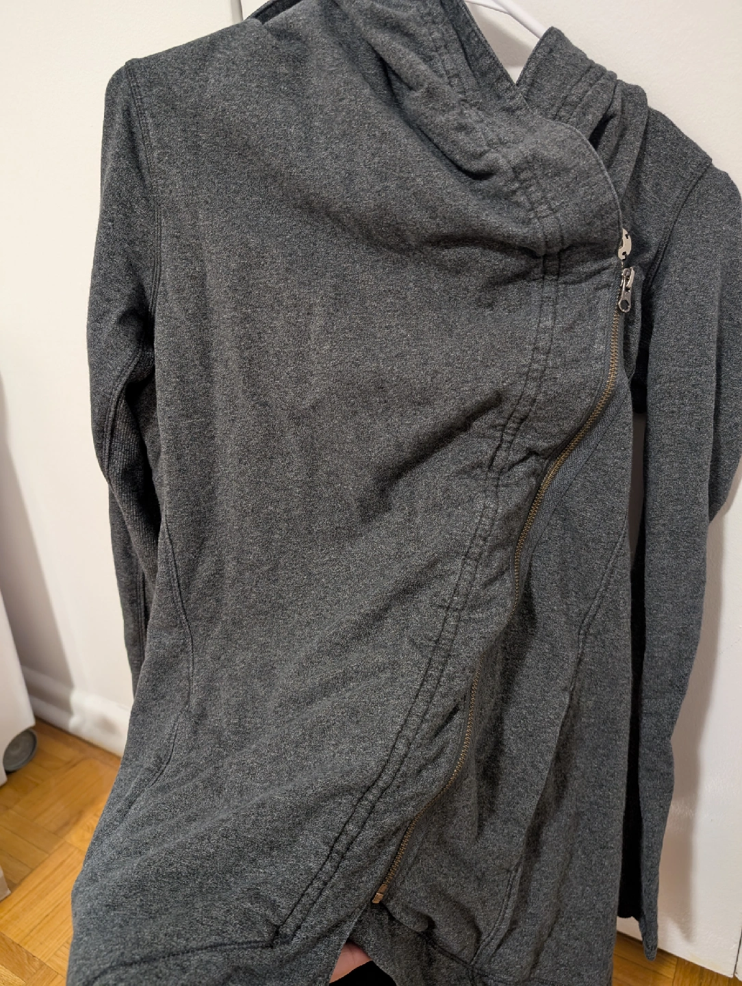 Rare design size 8, with an angular zipper and press buttons on the collar that turn into a cowl when buttoned up. excellent condition no damage, hardly worn. never put in the dryer after a wash.