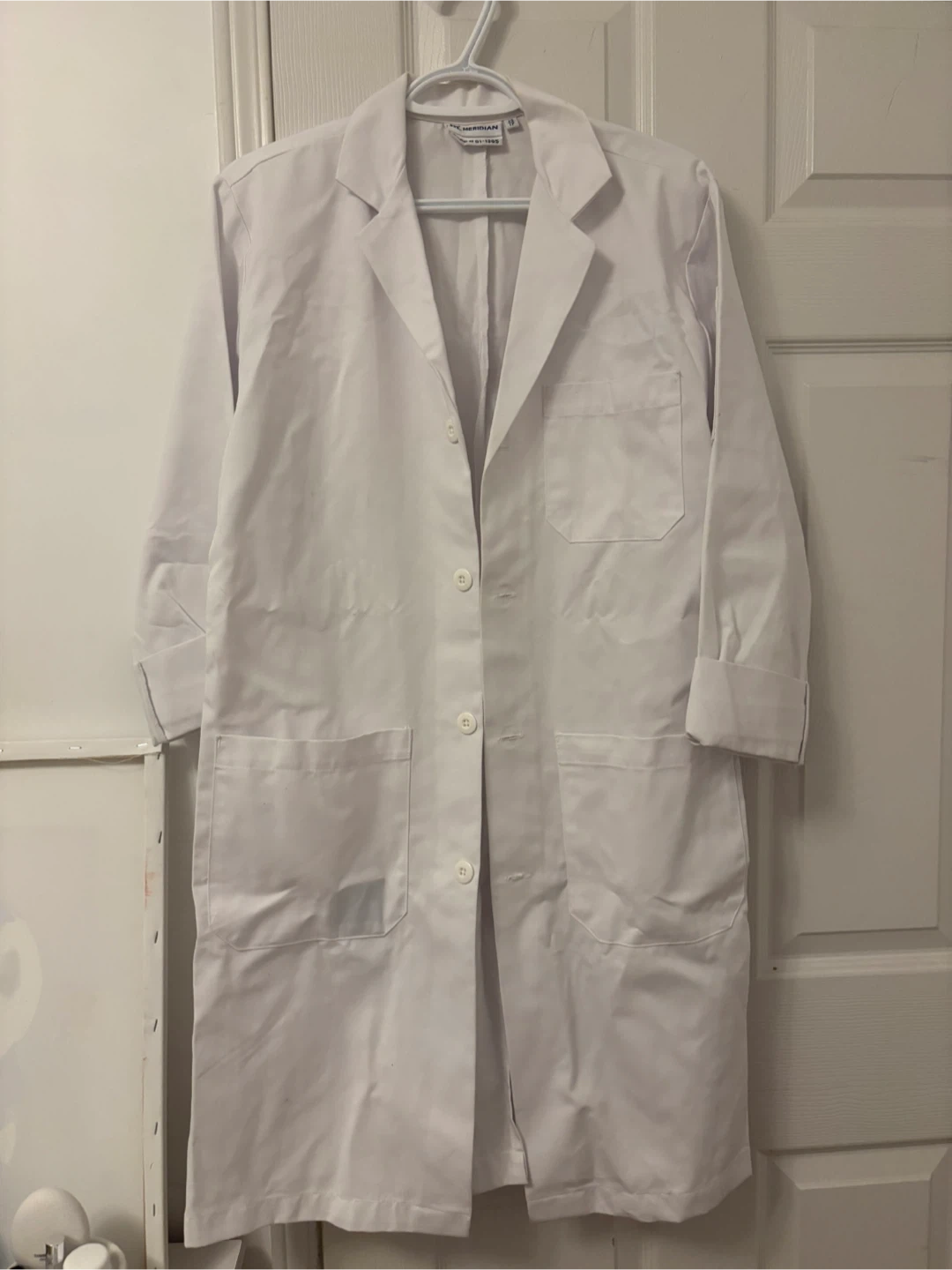 Selling a white lab coat from The Meridian. It's in great condition and standard for labs! Used for only a few times. SIZE XS but can fit S just as good