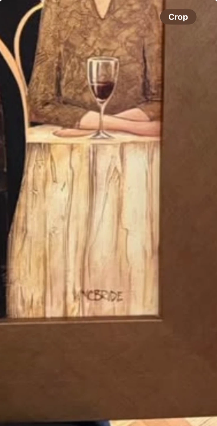 Add a touch of sophistication to your home with this framed McBride print, showcasing an elegant gathering in a distinctive style. The print is in good condition, with a sturdy frame that's ready to hang and become a focal point in any room.