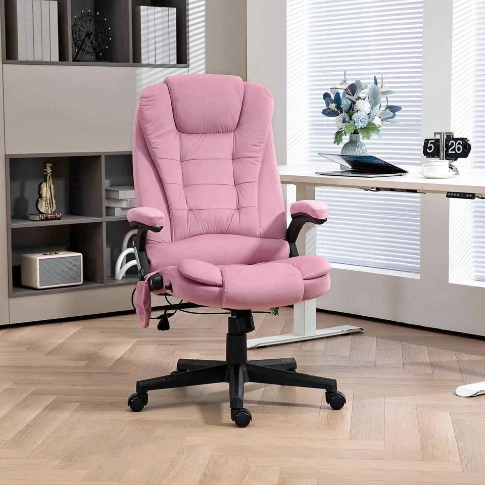 48This office chair features a reclining function for added comfort. It has a high back design that supports your posture during long hours of work. The chair is equipped with swivel wheels for easy mobility. Its pink color adds a stylish touch to any office space. The massage feature helps relieve tension and stress. Ideal for both home and professional use. Easy to assemble and maintain. Overall Dimensions: 26.4" W x 29.1" D x 45.7" H