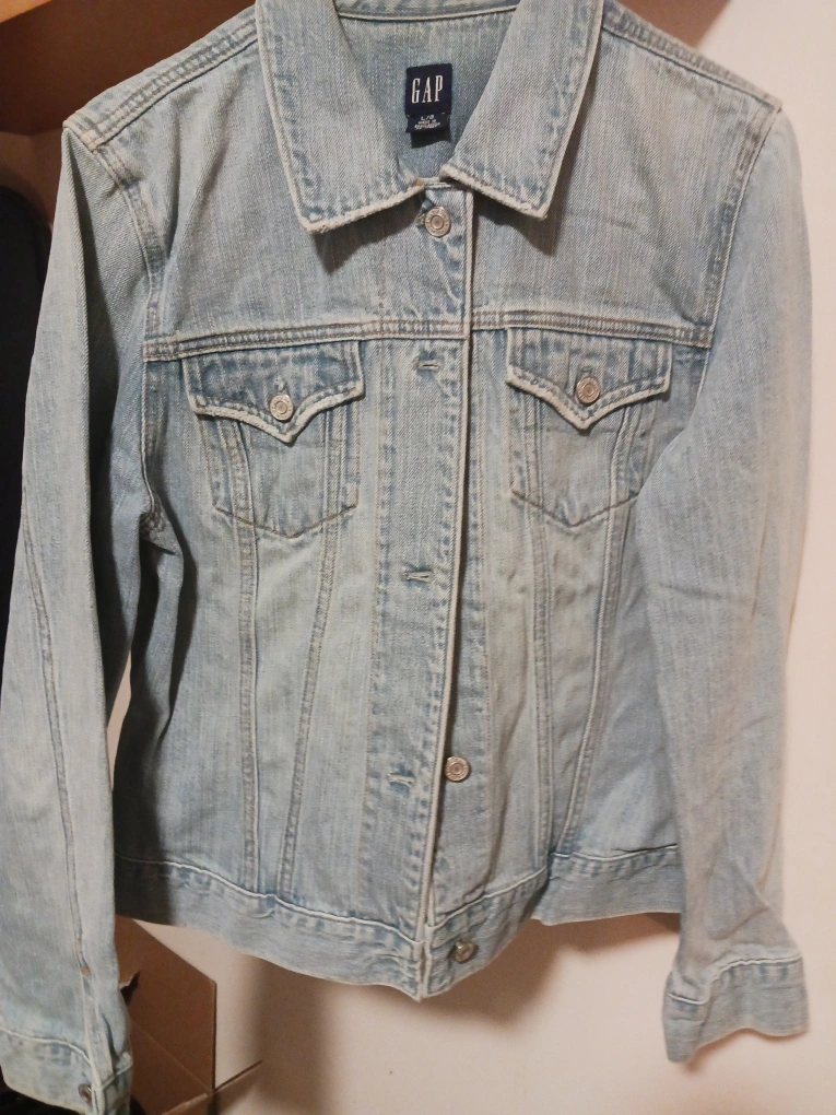 540Selling a classic Gap denim jacket! It's a light wash and in great condition. Perfect for layering or wearing on its own during those cooler evenings. It's made of durable denim material and has a timeless style that goes with everything.