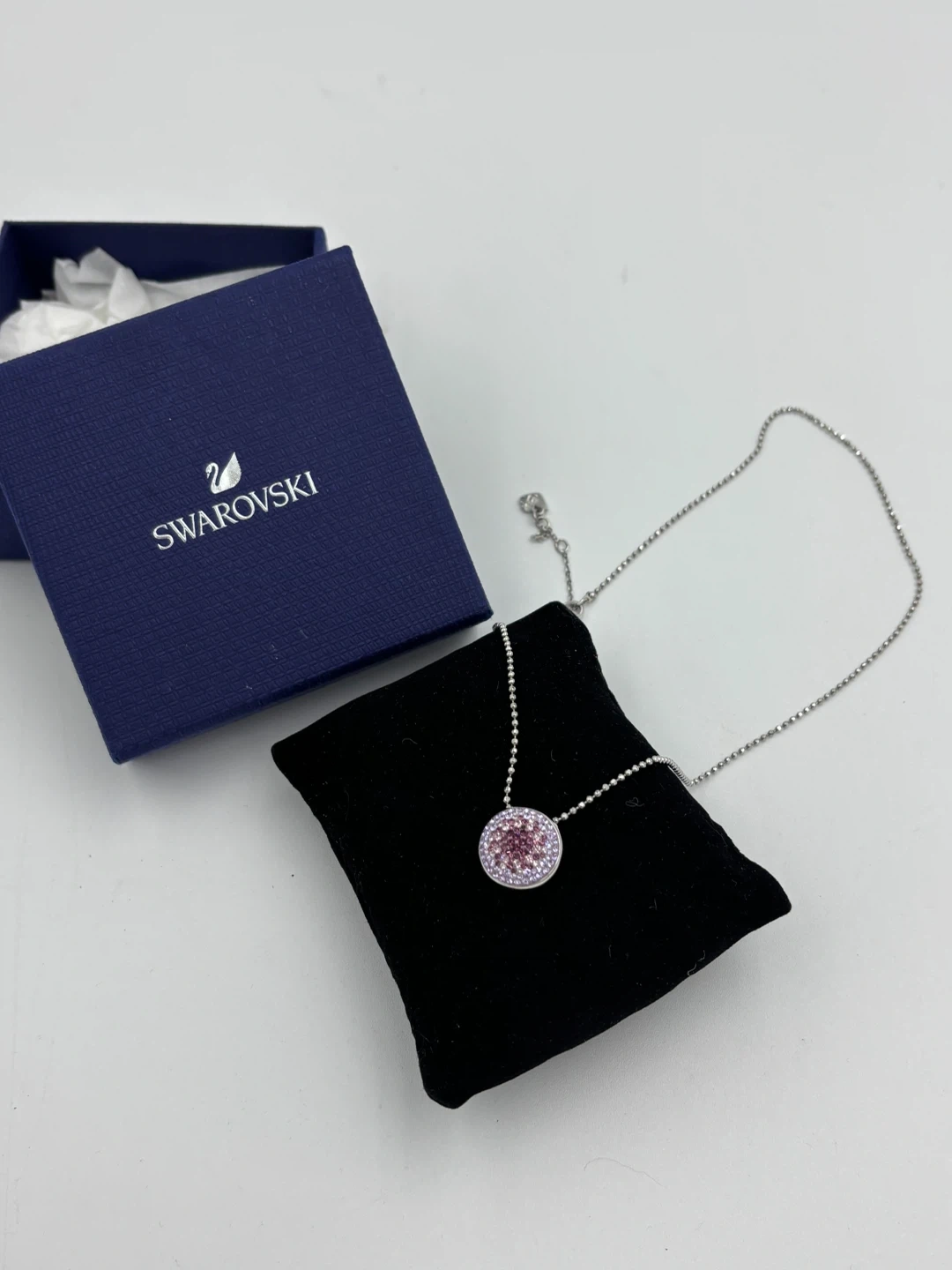 161Selling a beautiful Swarovski necklace featuring a pink circle pendant. It comes with box, perfect for gifting or keeping it safe. This elegant piece adds a touch of sparkle to any outfit!