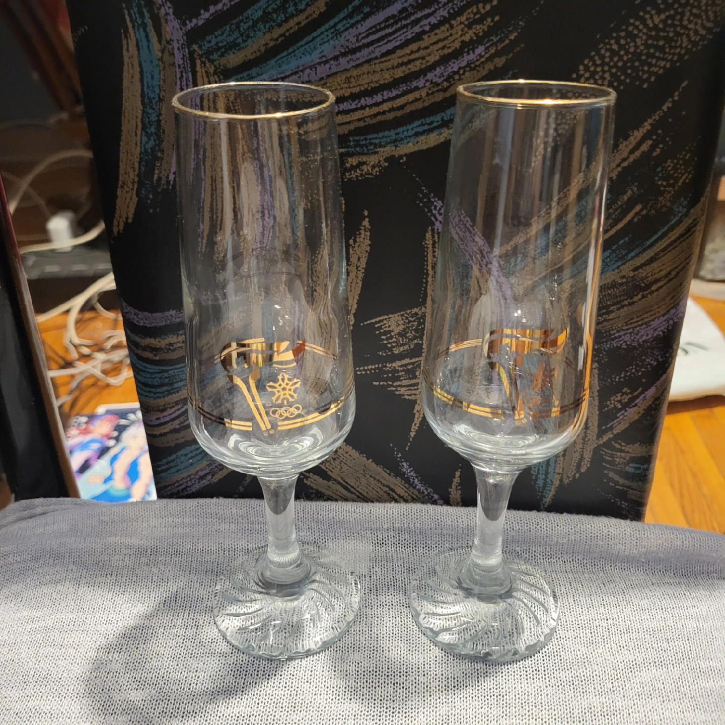 Selling a pair of champagne flutes commemorating the 2010 Vancouver Olympics! These glasses are in great shape and would be perfect for a collector or anyone who wants a unique piece of memorabilia