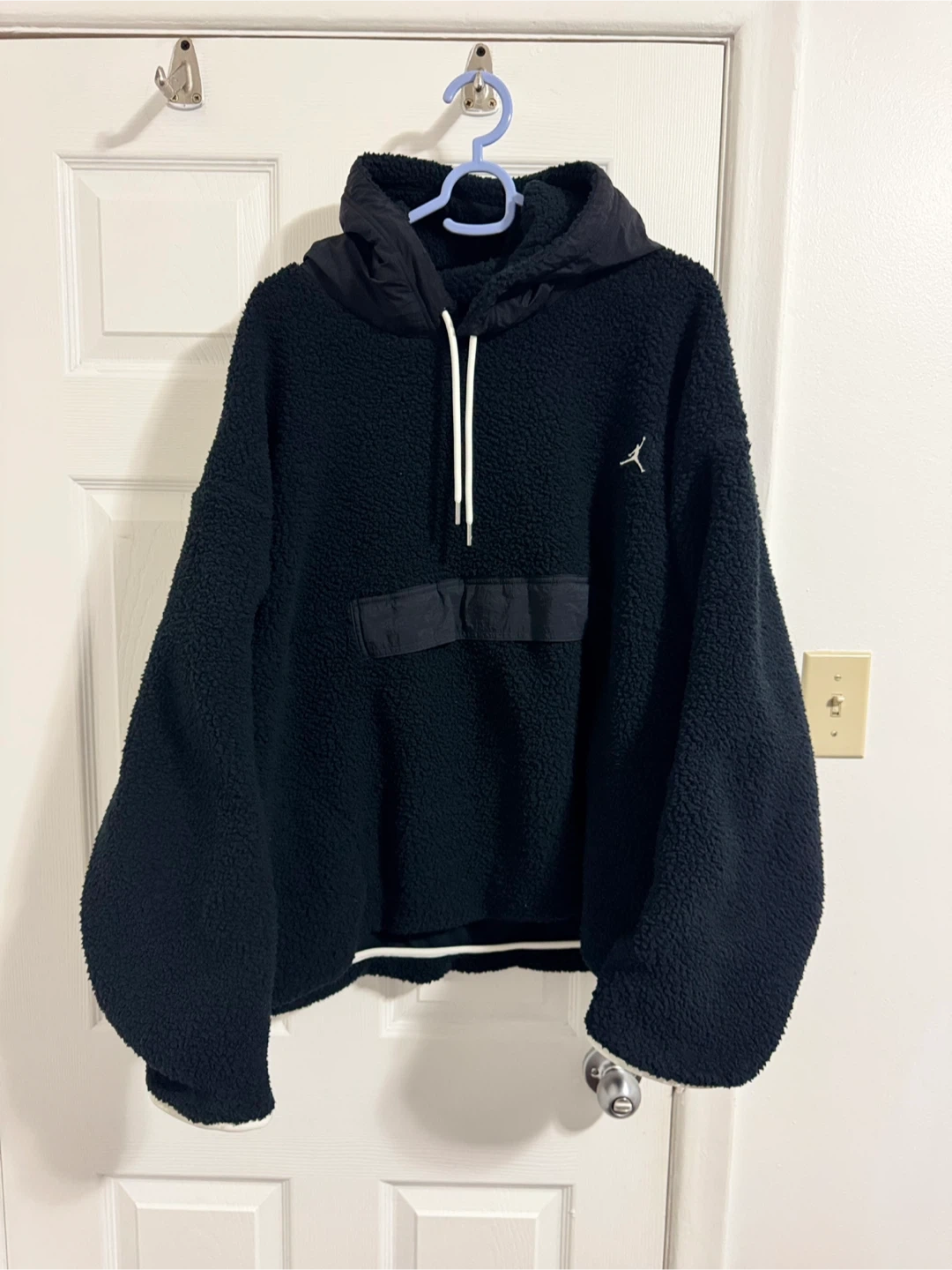 Cozy up in this Jordan sherpa pullover hoodie! It's a size 2XL and features a soft, plush sherpa material. Perfect for staying warm and stylish on chilly days