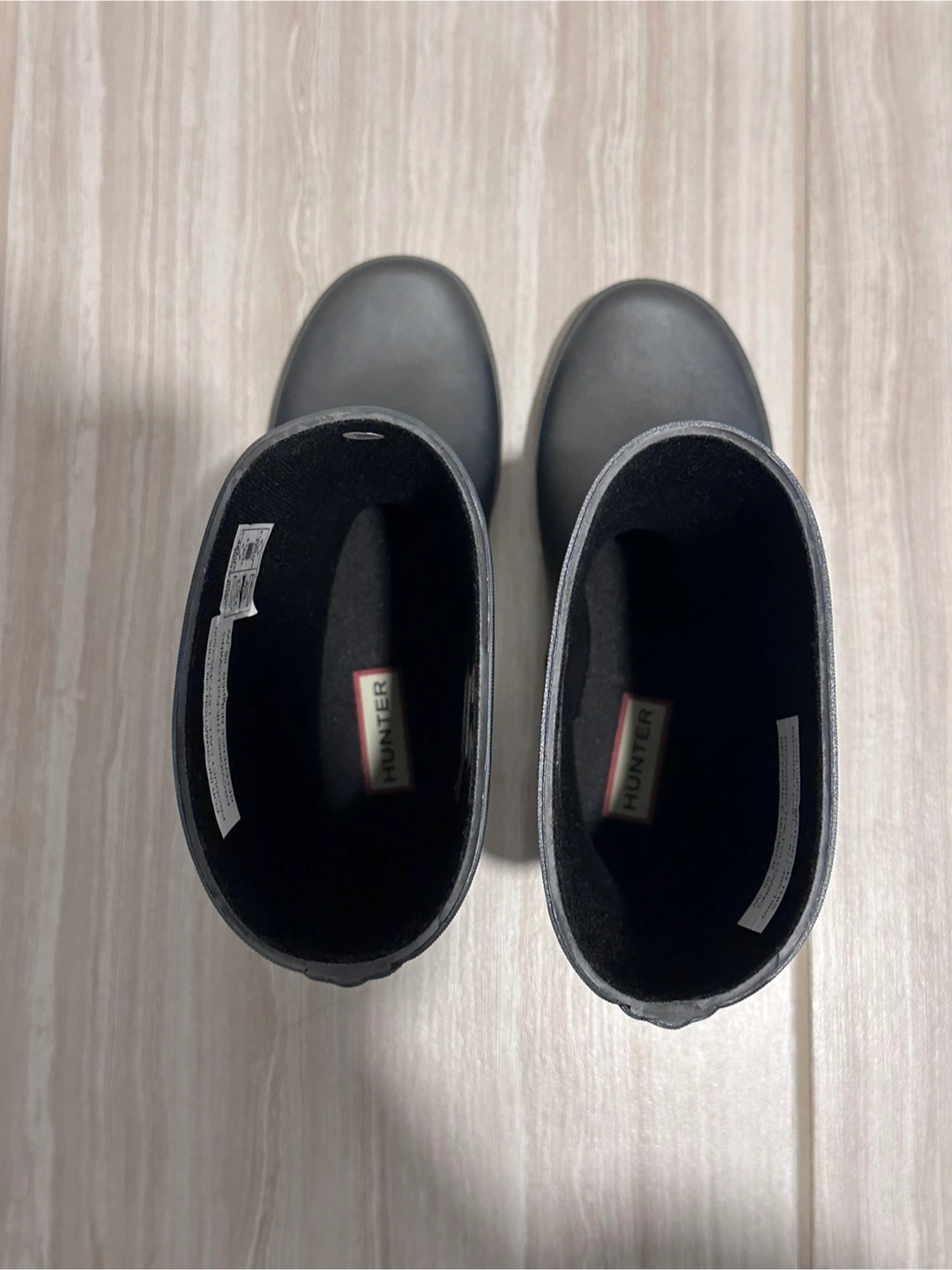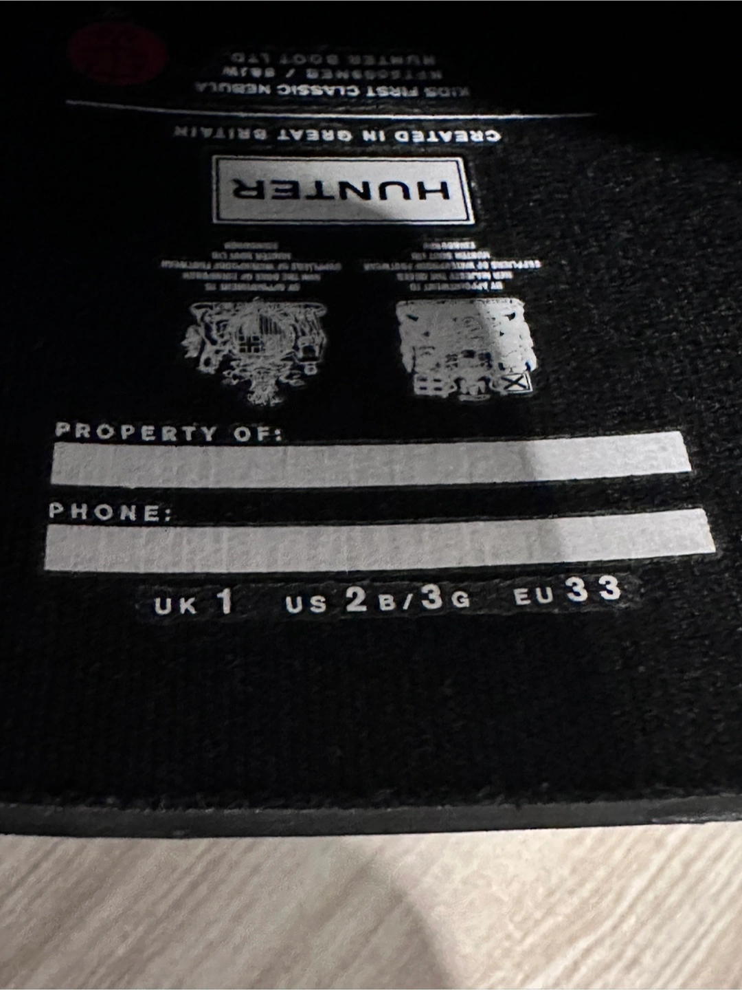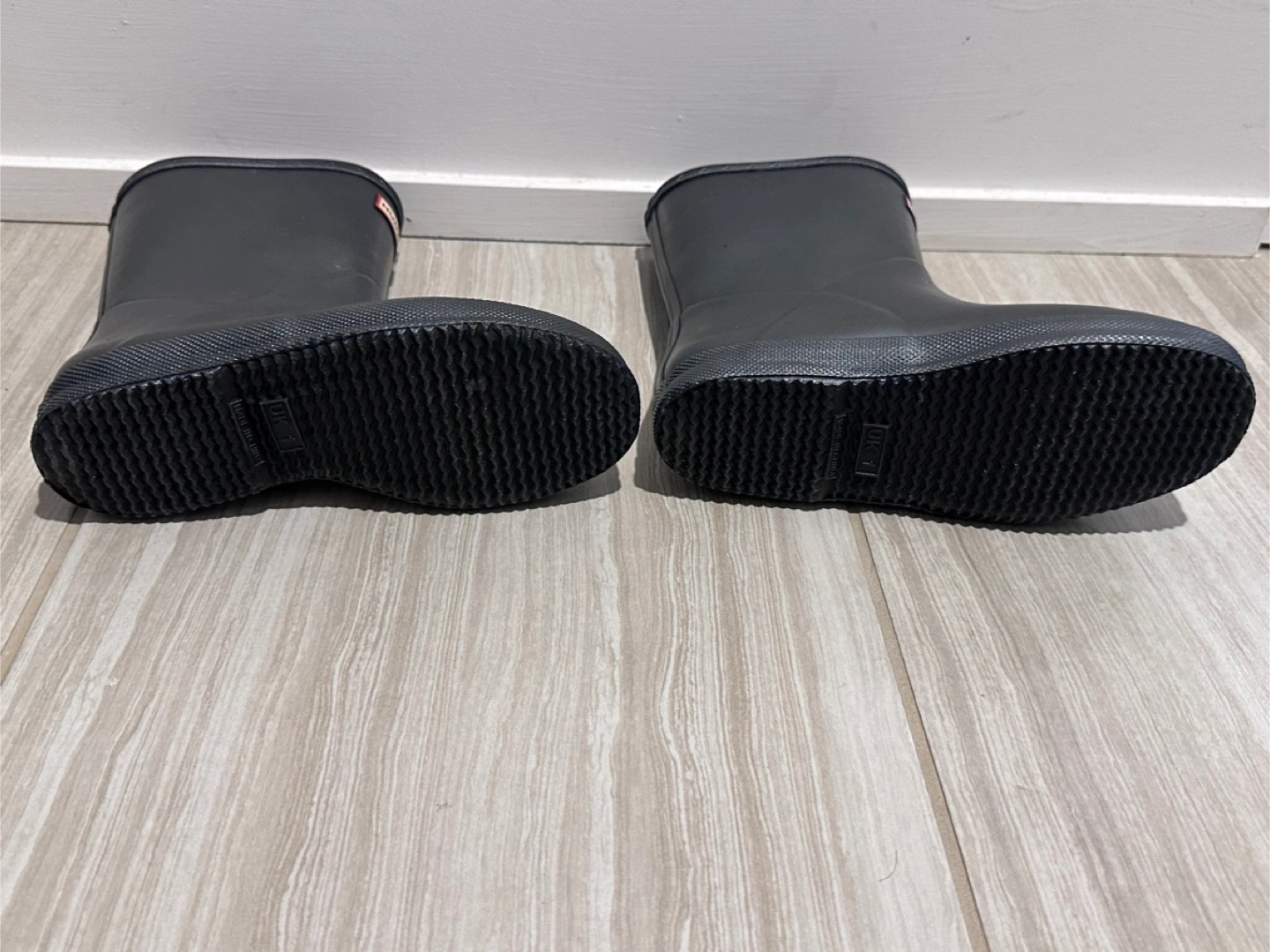 Selling a pair of brand new Hunter Kids First Classic Rain Boots in junior size US 2 (UK 1, EU 33). Color is dark metallic grey. These boots are perfect for keeping your little one's feet dry and comfortable on rainy days. The classic design and durable construction make them a great choice for any outdoor adventure!