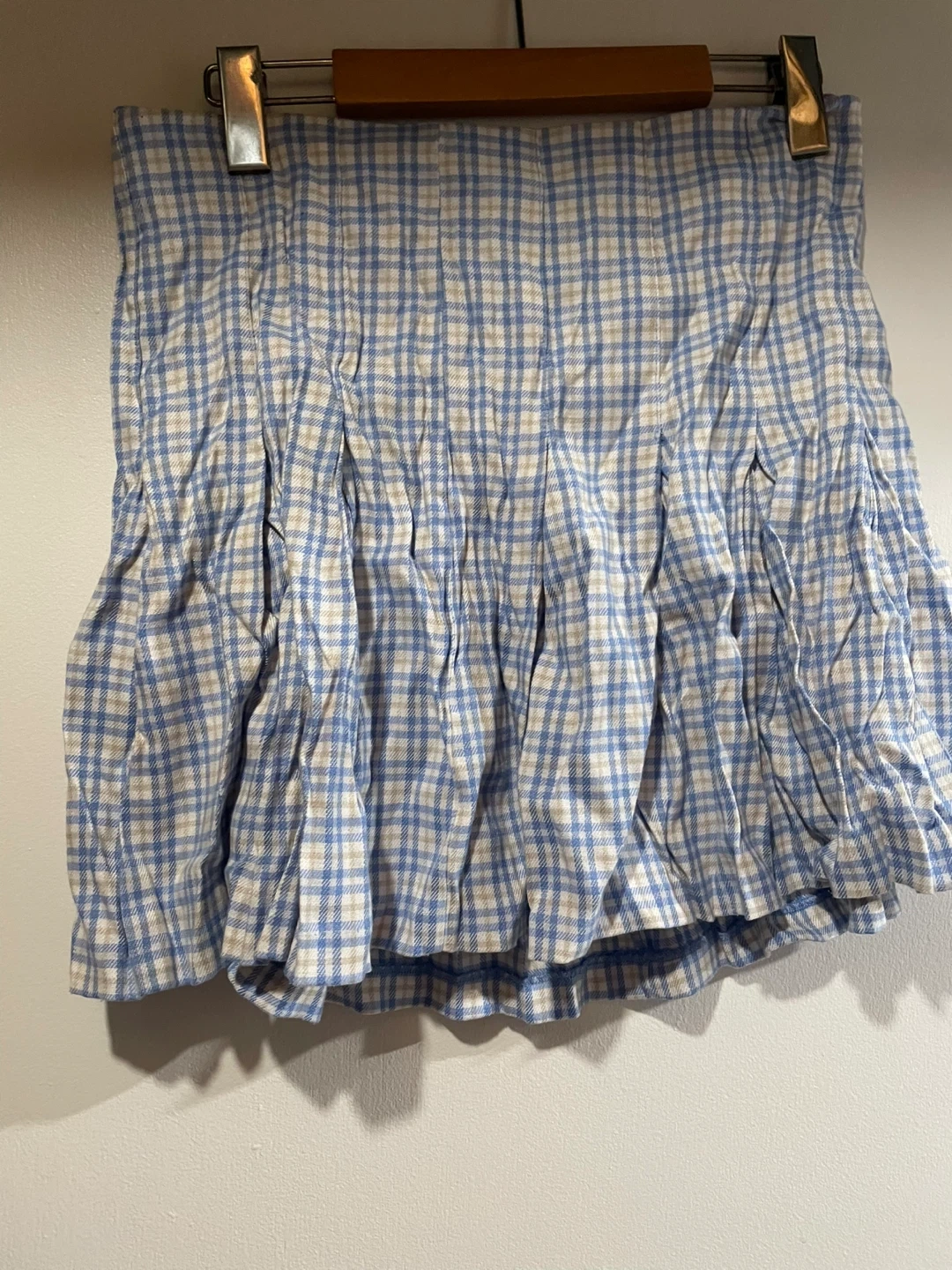 Selling a cute Ardene plaid skirt in size L/G! It's in great condition and perfect for a casual look. The light blue and white pattern is super versatile and easy to style. It’s a bit wrinkled because I had folded and it has been unworn.
