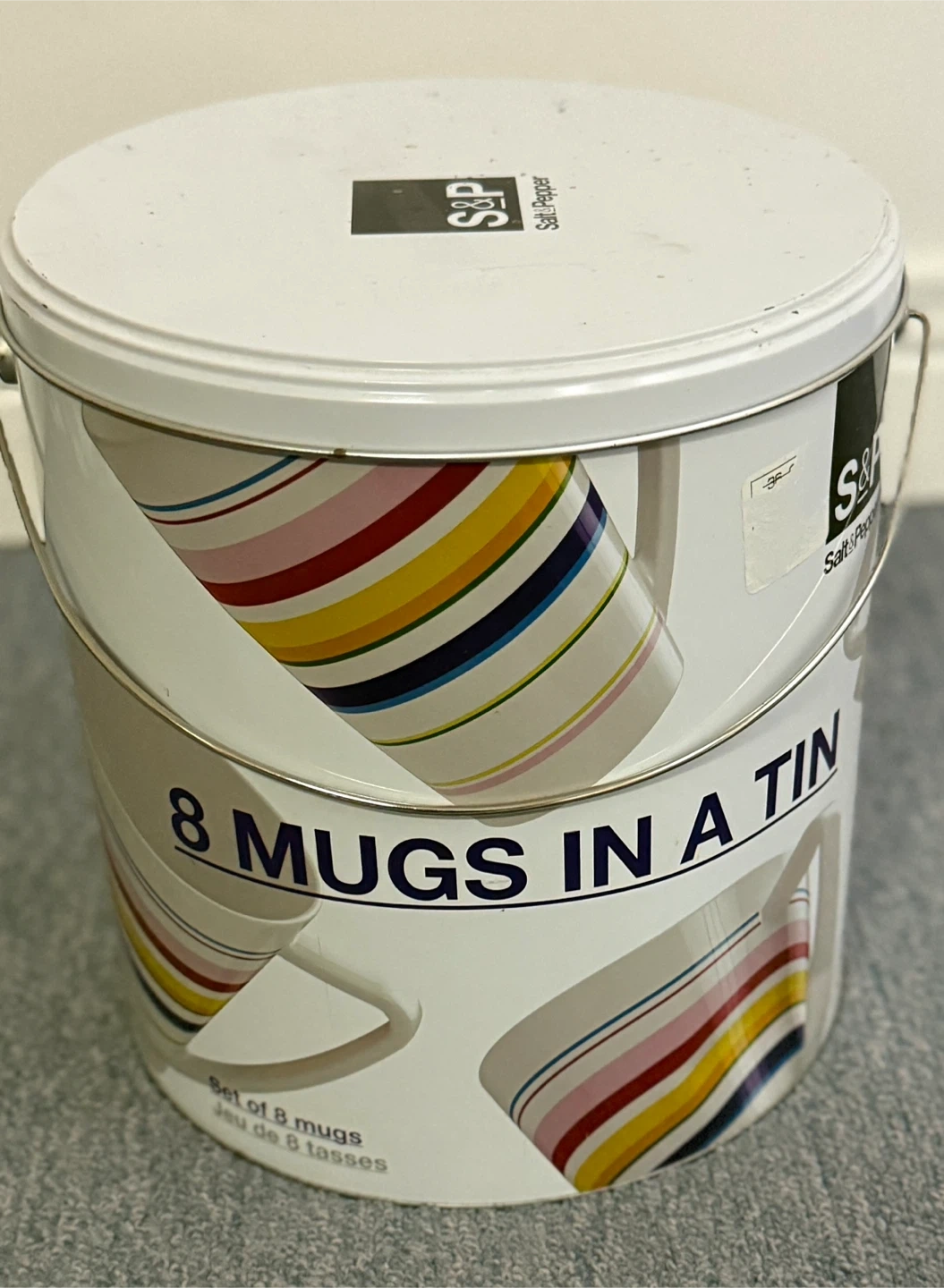 450Selling a set of 8 Salt&Pepper mugs that come in a cute tin! These mugs are perfect for coffee, tea, or any beverage you fancy. The tin makes for easy storage and a lovely display. Great for gifting or adding a touch of charm to your kitchen