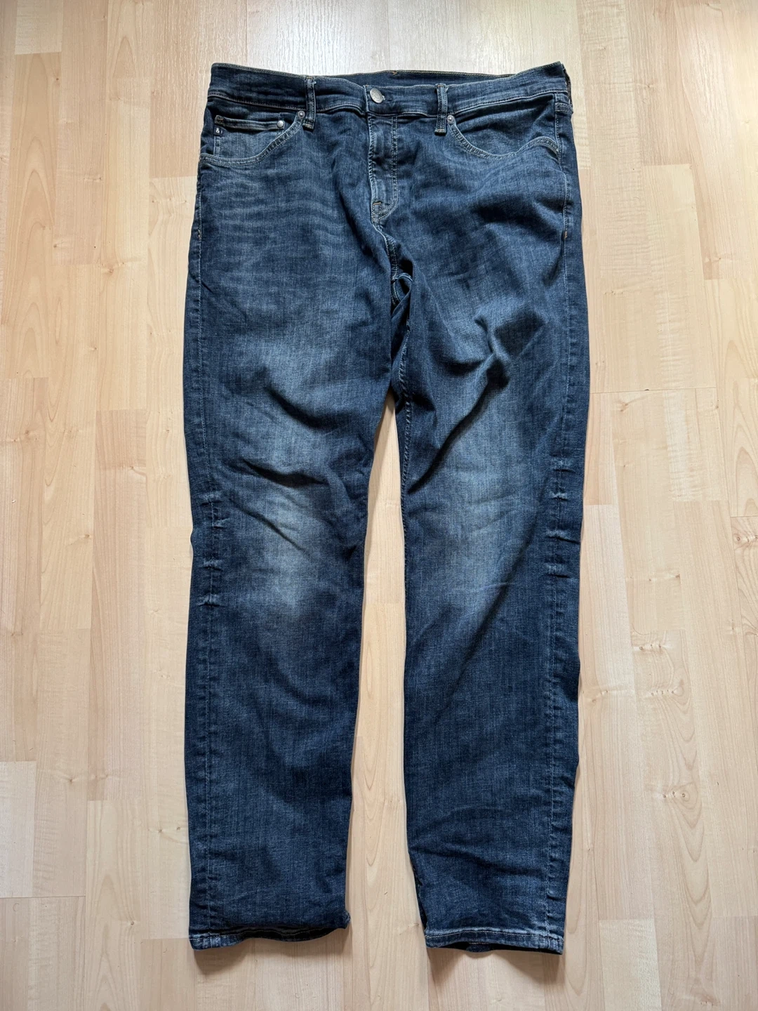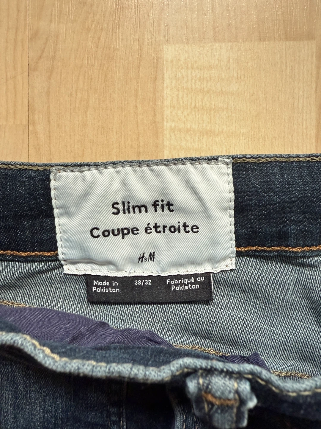 Selling a pair of H&M slim fit jeans in size 38/32. They're in great shape and ready for a new home! The jeans are a nice dark wash denim, perfect for everyday wear.