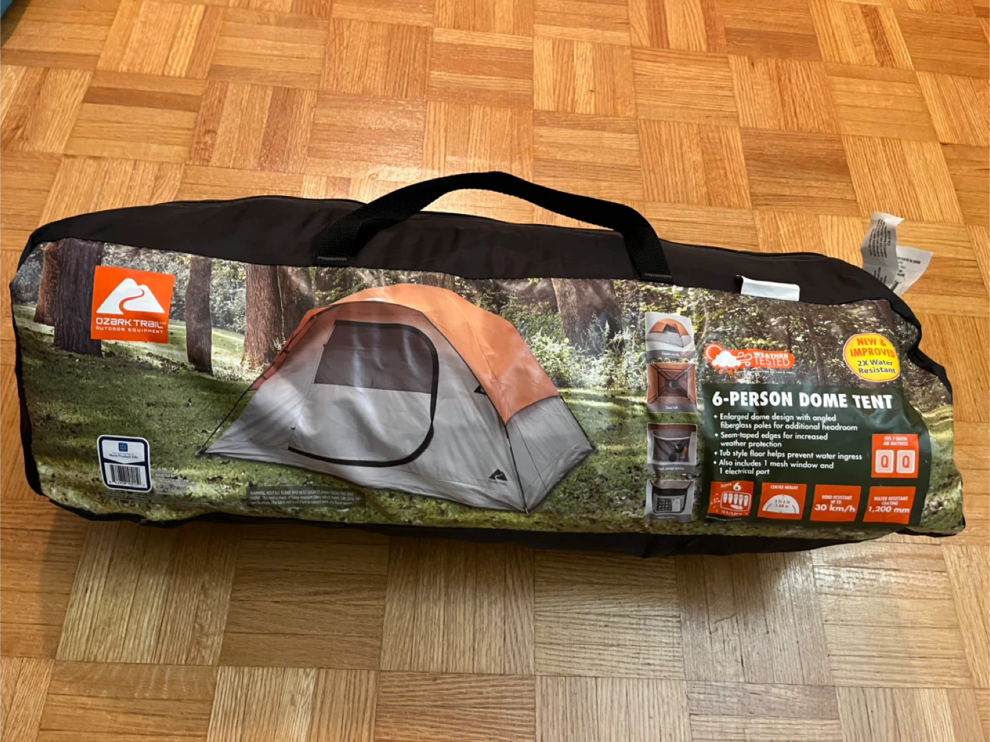 Selling an Ozark Trail 6-person dome tent. It's in great shape and ready for your next camping adventure! The tent features an enlarged dome design with angled fiberglass poles for additional headroom. Includes one mesh window and one electrical port. Wind resistant up to 30 km/h and water resistant up to 1,200 mm