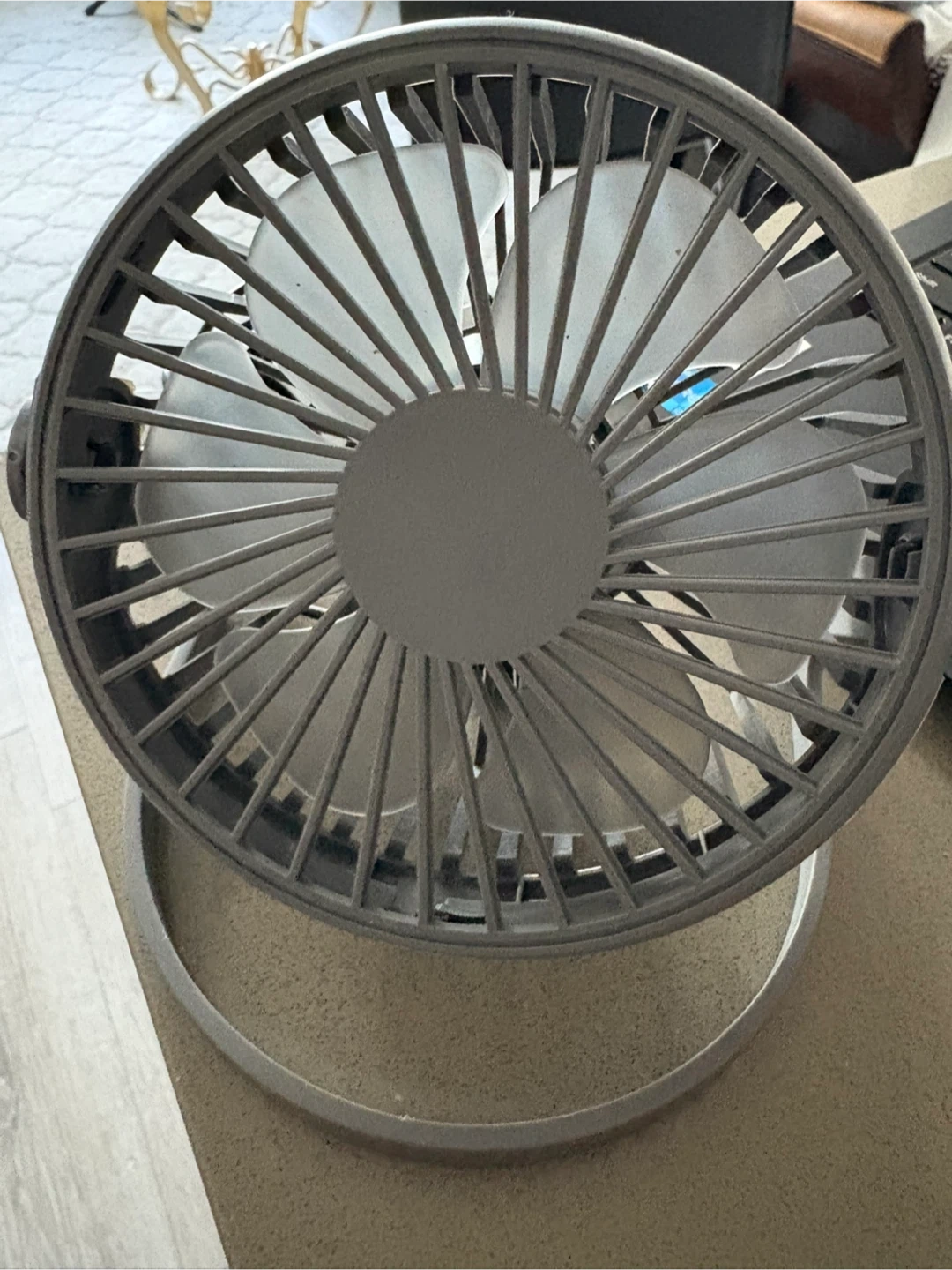FREE handy mini desk fan! It's perfect for keeping cool at your workspace or bedside table. This fan is lightweight and portable, making it easy to move around wherever you need a breeze. Used only one.