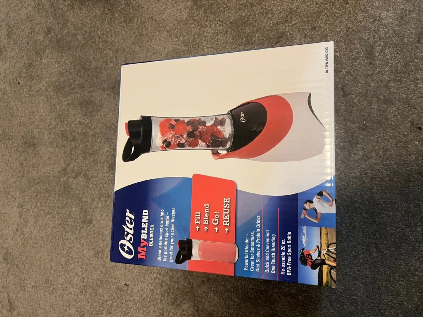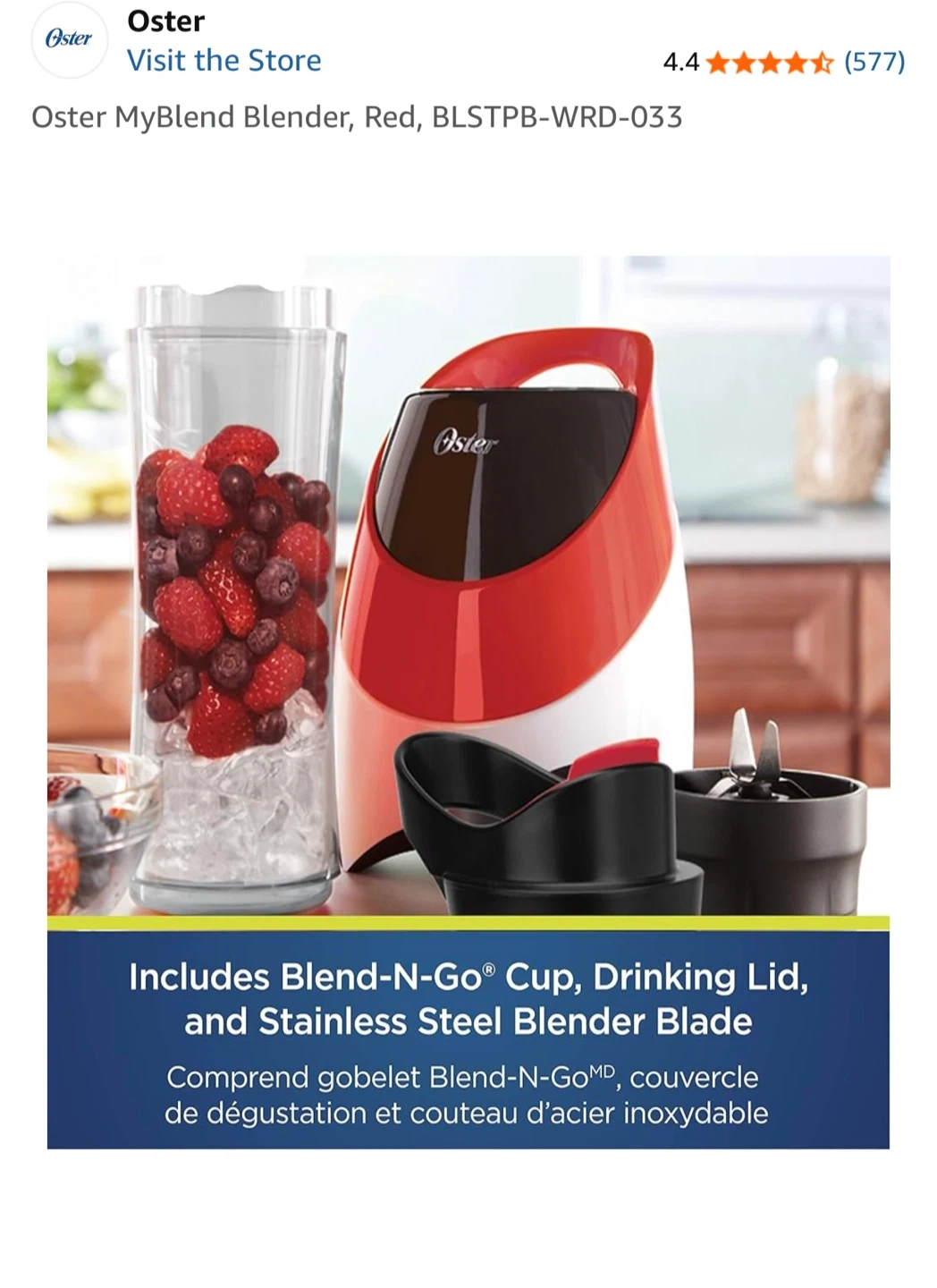 Selling a red Oster MyBlend personal blender! It comes with the Blend-N-Go cup, drinking lid, and stainless steel blender blade. It's quick and convenient for one-touch blending, and the bottle is BPA-free. Box included!