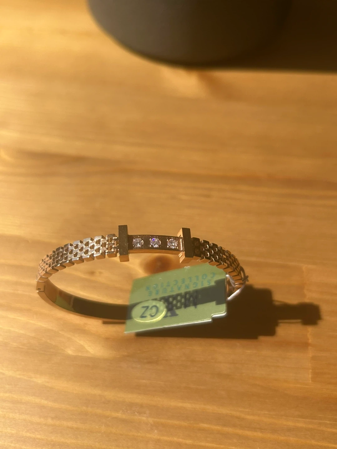 96Selling a beautiful gold bracelet from the CZ Signature Collection! It features a unique design with sparkling stones.