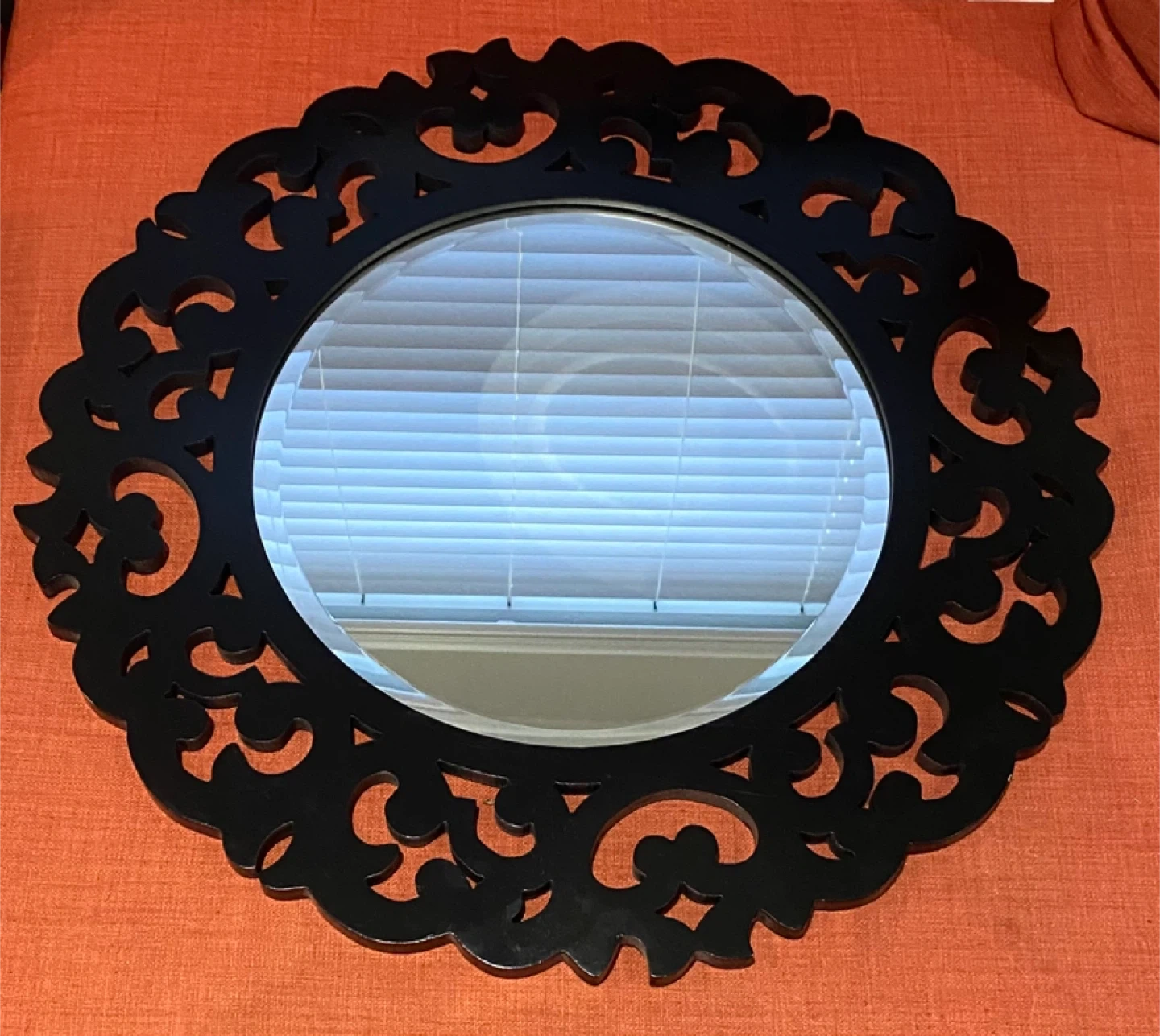 Selling a lovely round mirror with a unique, ornate, solid wood black frame. It would look great in any room, adding a touch of elegance and style to your home decor! The mirror is in like-new condition and ready to find a new home. Frame measures 24” diameter, mirror 14-1/4” diameter. Pick up at Weston and Eglinton.