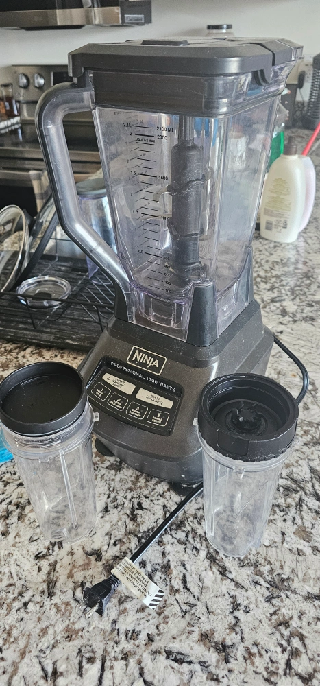 193Selling a Ninja Professional 1500 Watts blender. It comes with two single-serve cups with lids. This powerful blender is great for making smoothies and other blended drinks!
