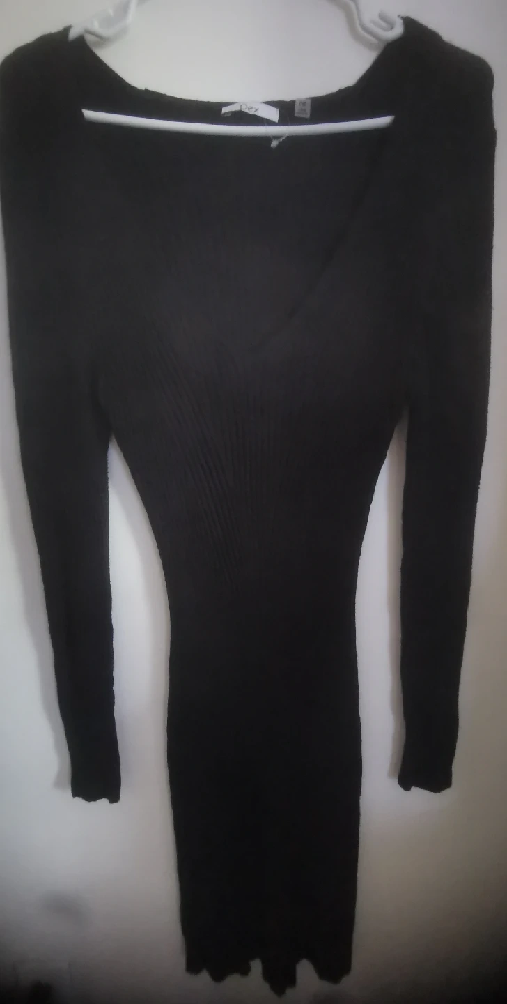 Selling a Dex black long sleeve dress in size medium. It's in great condition and perfect for a night out or a cozy evening in! The dress features a flattering v-neck and a fitted silhouette