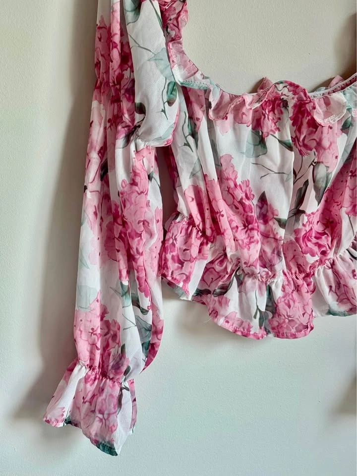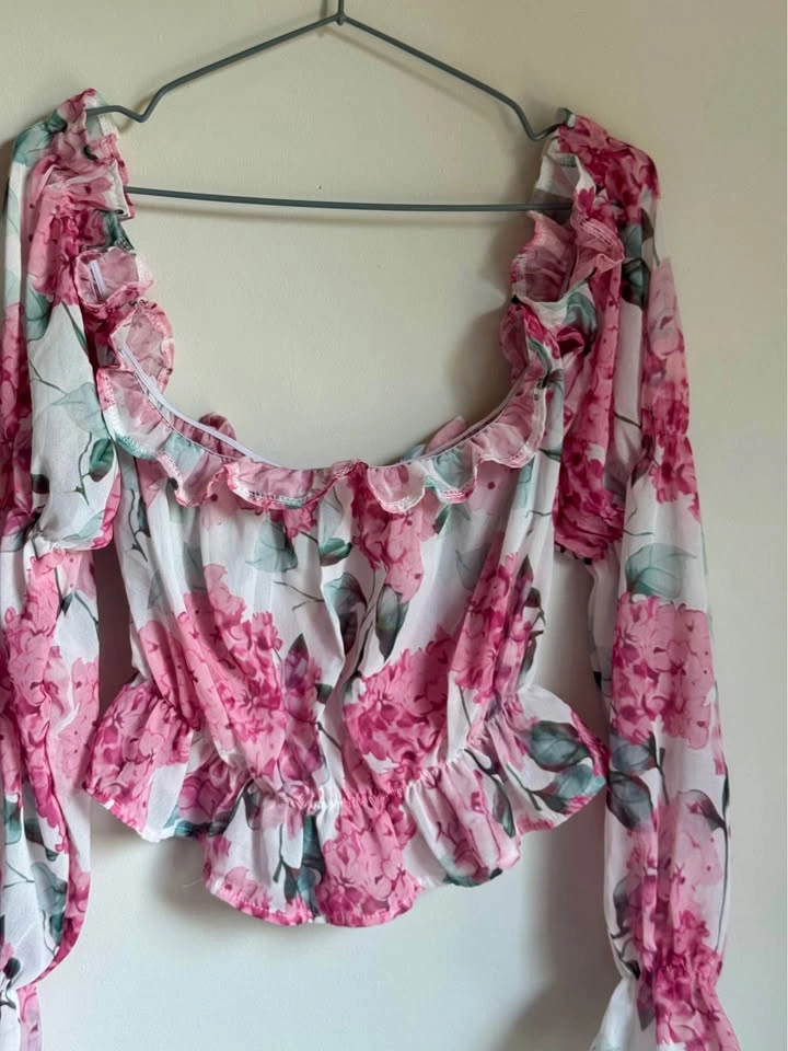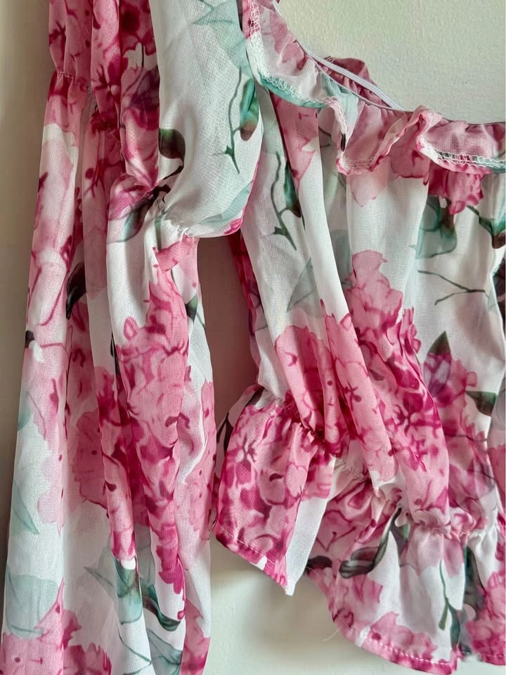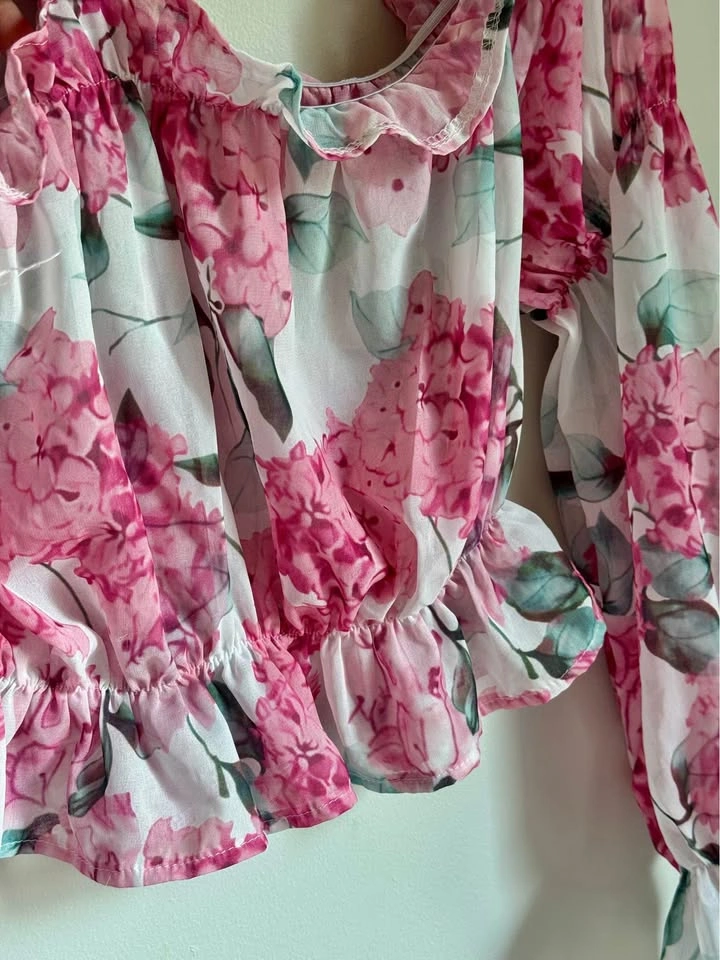 10pink floral design on chiffon ruffle top size small pickup in bowmanville, liberty st