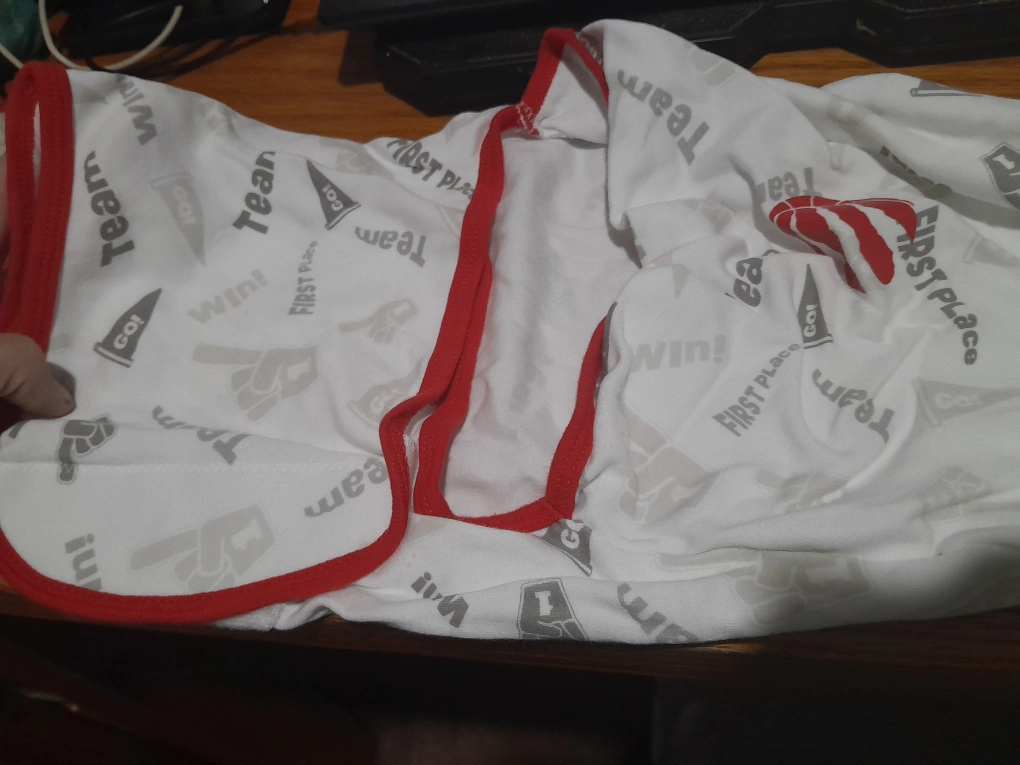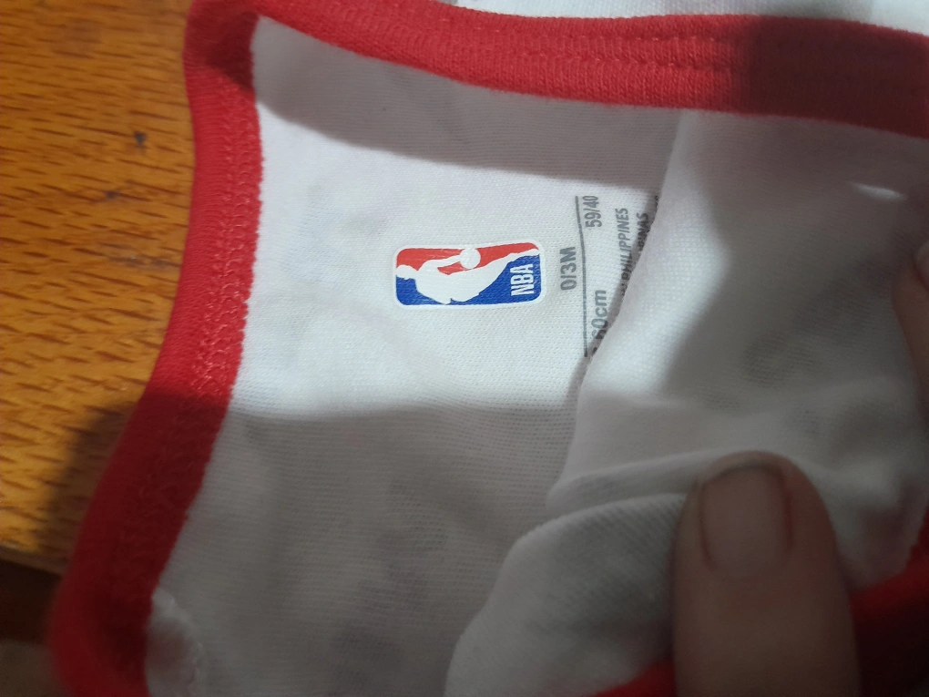 This adorable NBA baby onesie is perfect for your little basketball fan! It's sized for 0-3 months and features a cute design with 'Win!' and 'First Place' graphics. The onesie has a red trim and the NBA logo is prominently displayed. It's in great condition and ready for a new home!