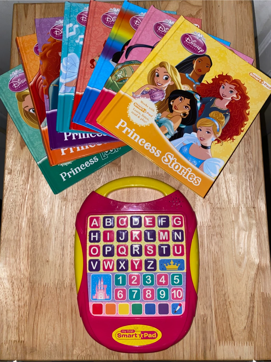 Selling a set of Disney Princess books and a 2-sided Smart Pad. The books included are Princess Look&Find, Princess 123, Princess Rhymes, Princess Songs, Princess Tales, Princess Stories, Princess ABCs & Colors All Around. Great for learning and fun! Has good clear sound! Suits ages 2-5.
