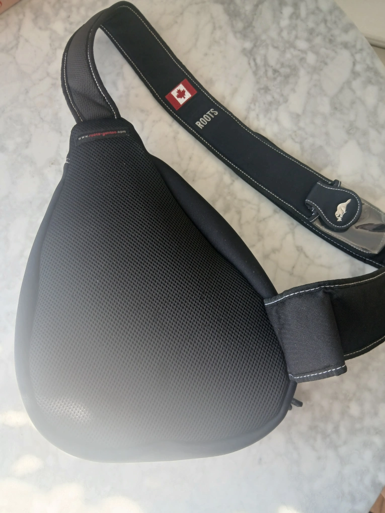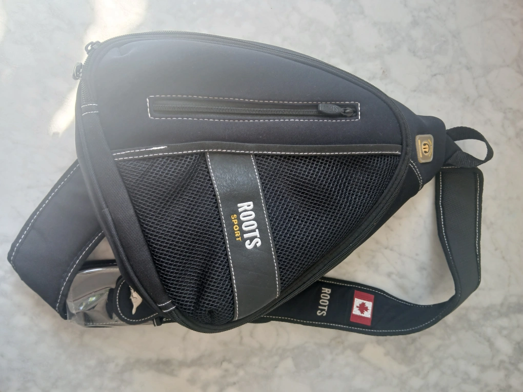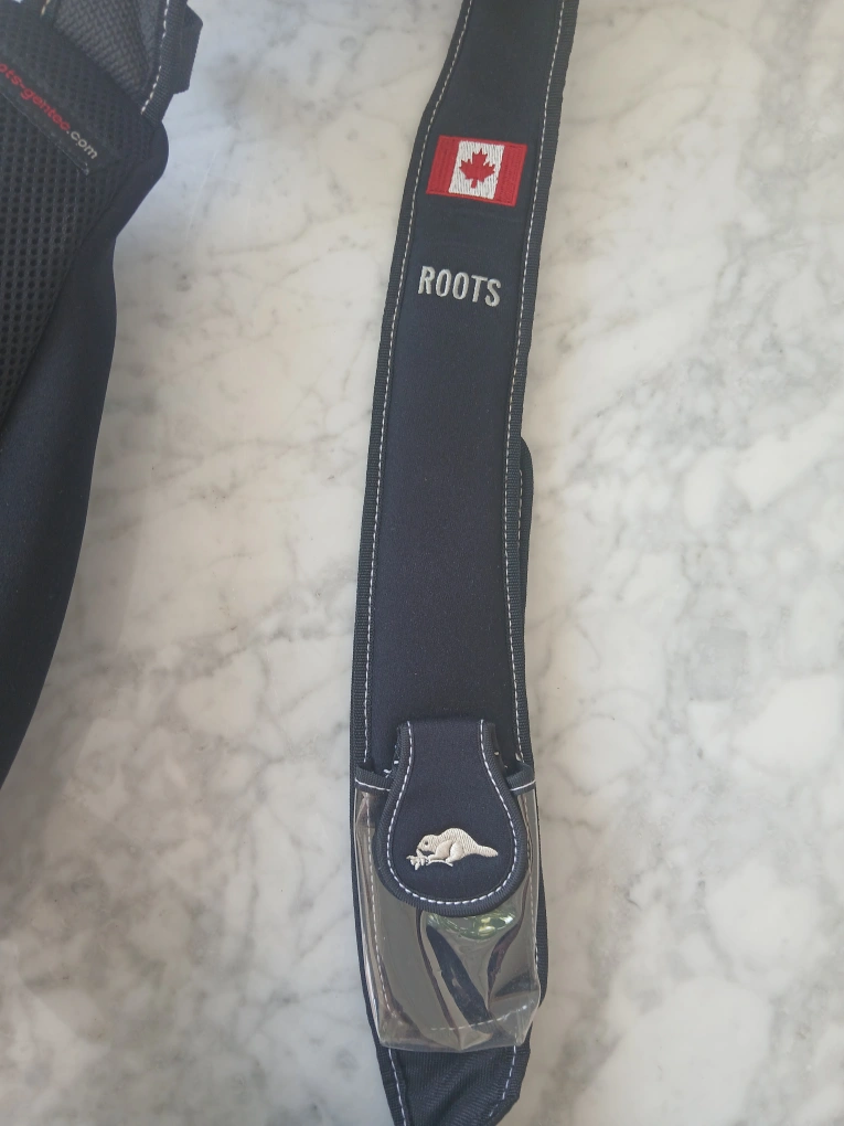 Roots Sport bag with sound interface. It is black and in perfect condition, as it has not been used! Perfect for carrying your camera and accessories, or take the dividers out inside and use as a medium size crossbody bag.