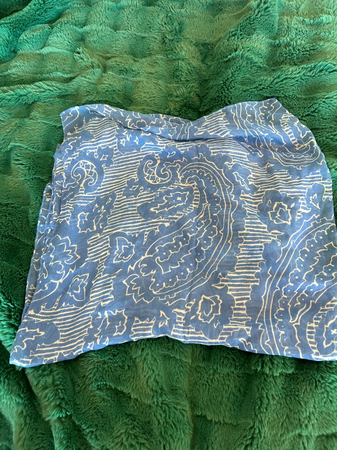 Selling a J.crew blue cotton scarf with a unique pattern. It's in brand new condition and would be a lovely addition to any outfit! The material is cotton, soft and lightweight, perfect for adding a touch of style without being too heavy