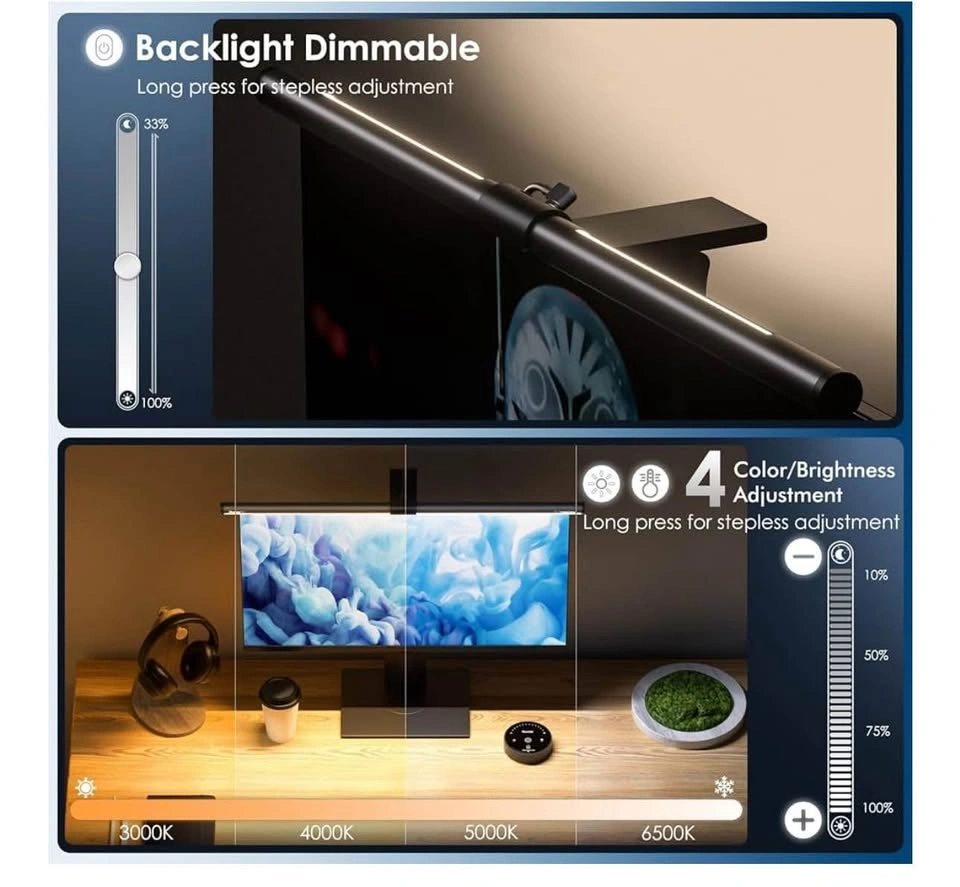 Quntis Curved Monitor Light Bar 20'', HY214 PRO Longer and Wider Backlight, Sliding Weighted Clip Fit for All Screens, Adjustable Stepless Dimming, Eye Caring No Glare Gaming Work Desk Lamp No issues Pickup in AJAX - Ultra Bright & Wider Illumination - High Compatibility Patented Sliding Weighted Clip - 3 Eye-Comfort Lighting Modes - Smart Remote Control - Masterful Illumination & High Ra95 CRI