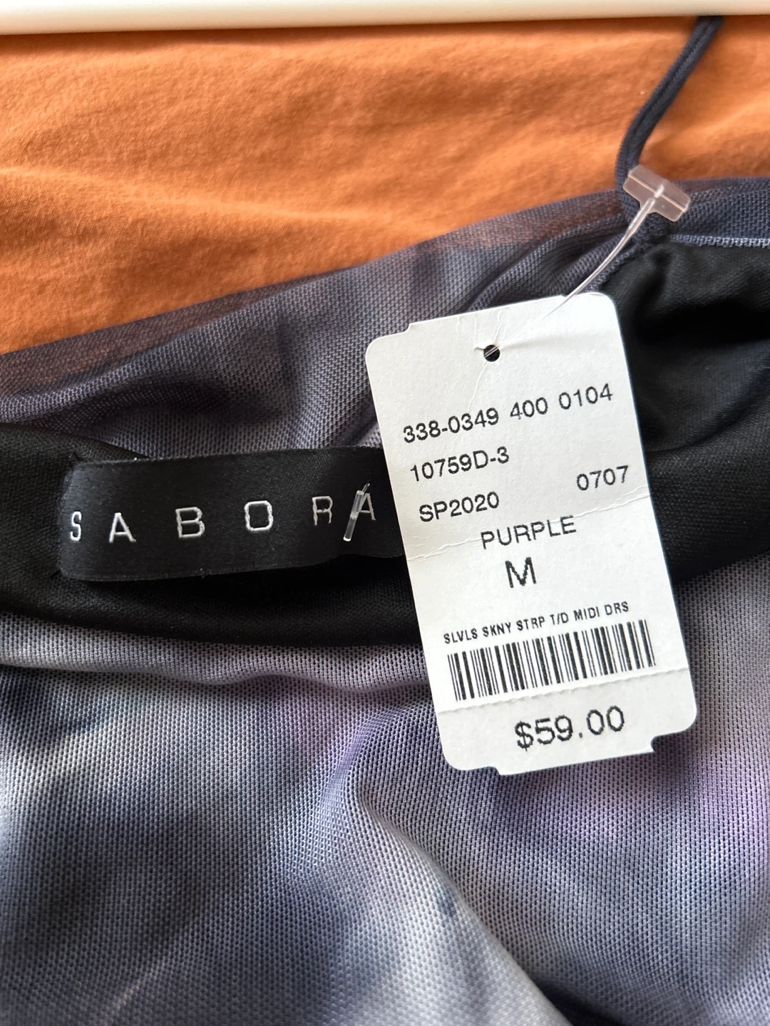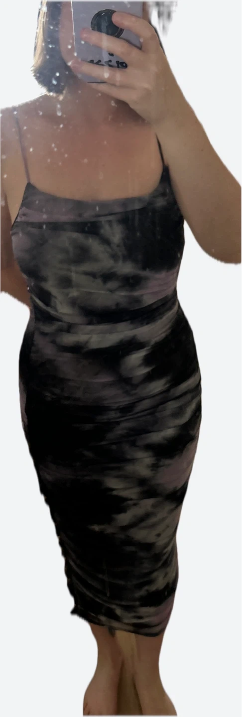 Selling a Sabora midi dress in a lovely purple tie-dye pattern. It is a very stretchy material so I would say suitable for most sizes. I am around a size 12/14 and 5 foot 5 and it’s a midi length on me.