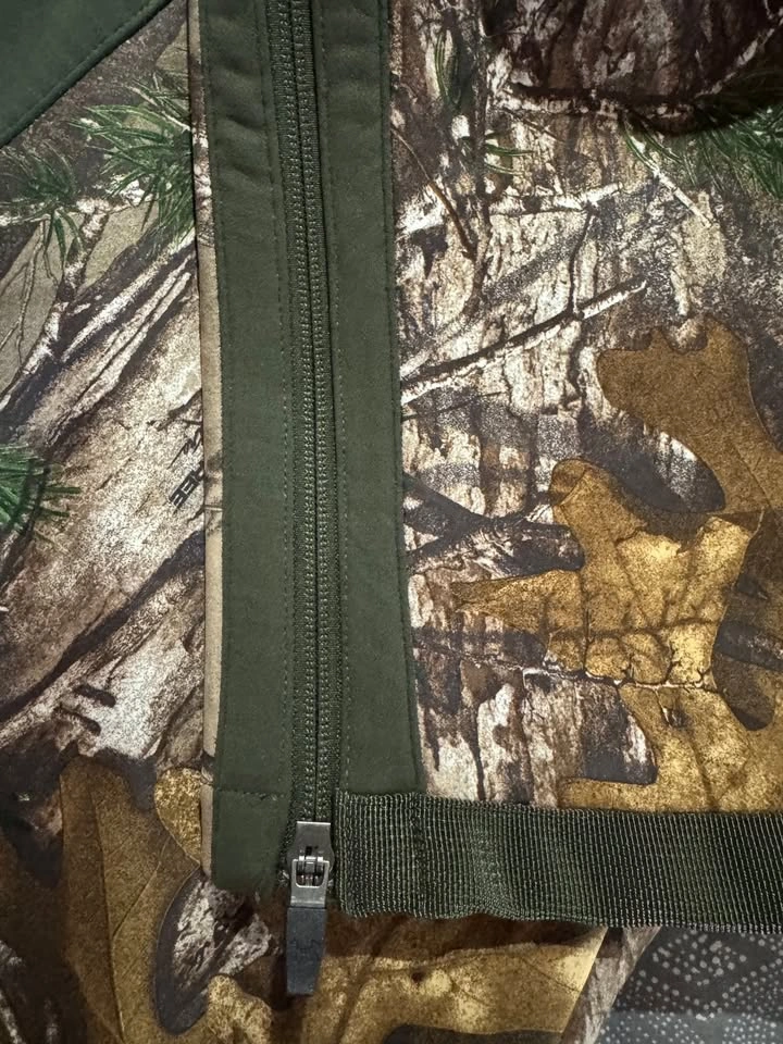 * The ultra-quiet soft-shell fabric has a durable water-repellent finish and is also wind-resistant.