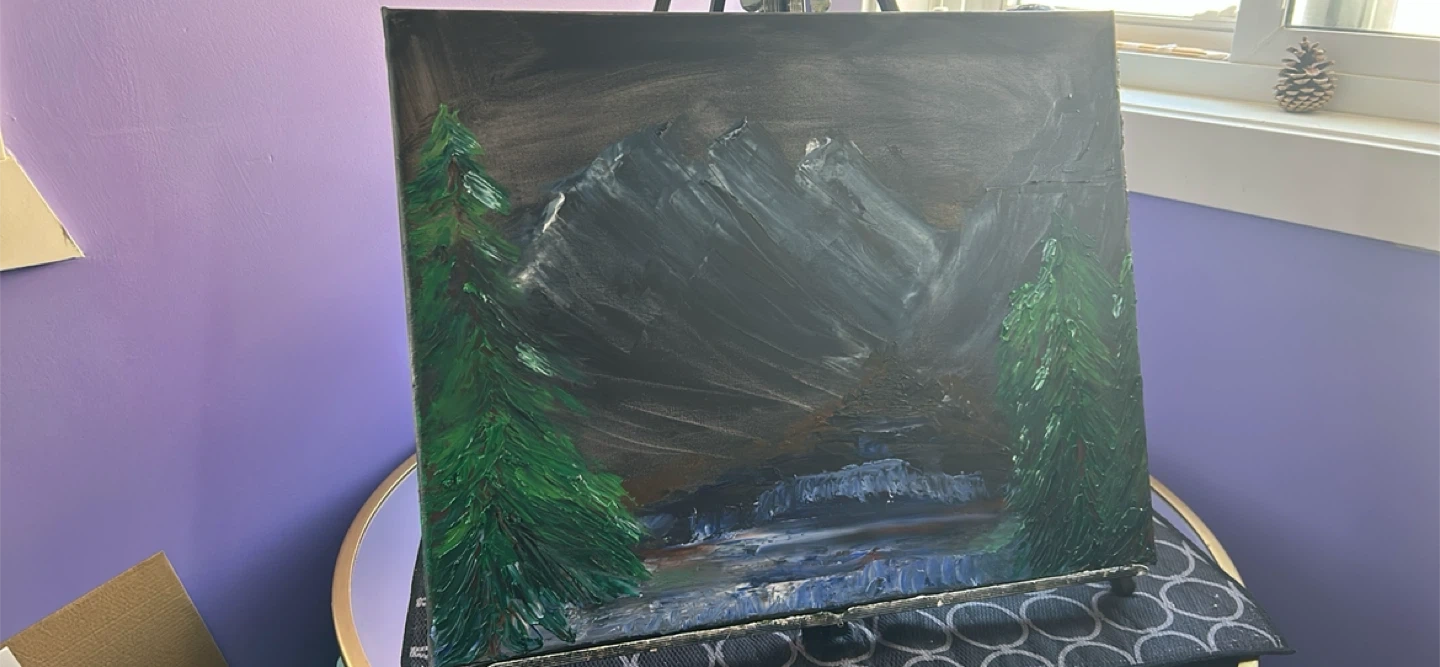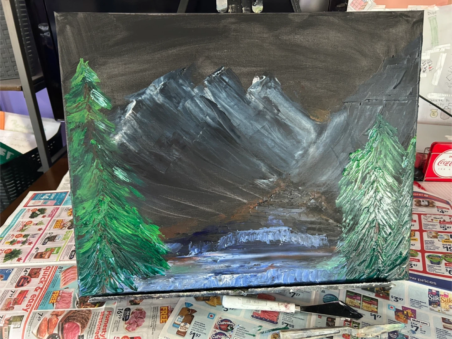 16x20 inch oil painting. Knife mountain. Beautiful mountain range at knight. With a river bead and evergreen trees around. Cash or e-transfer only. Payment to be made at pick up. No refunds. If item needs to be shipped customer pays for shipping. Pick up place is the A&W 200st Langley