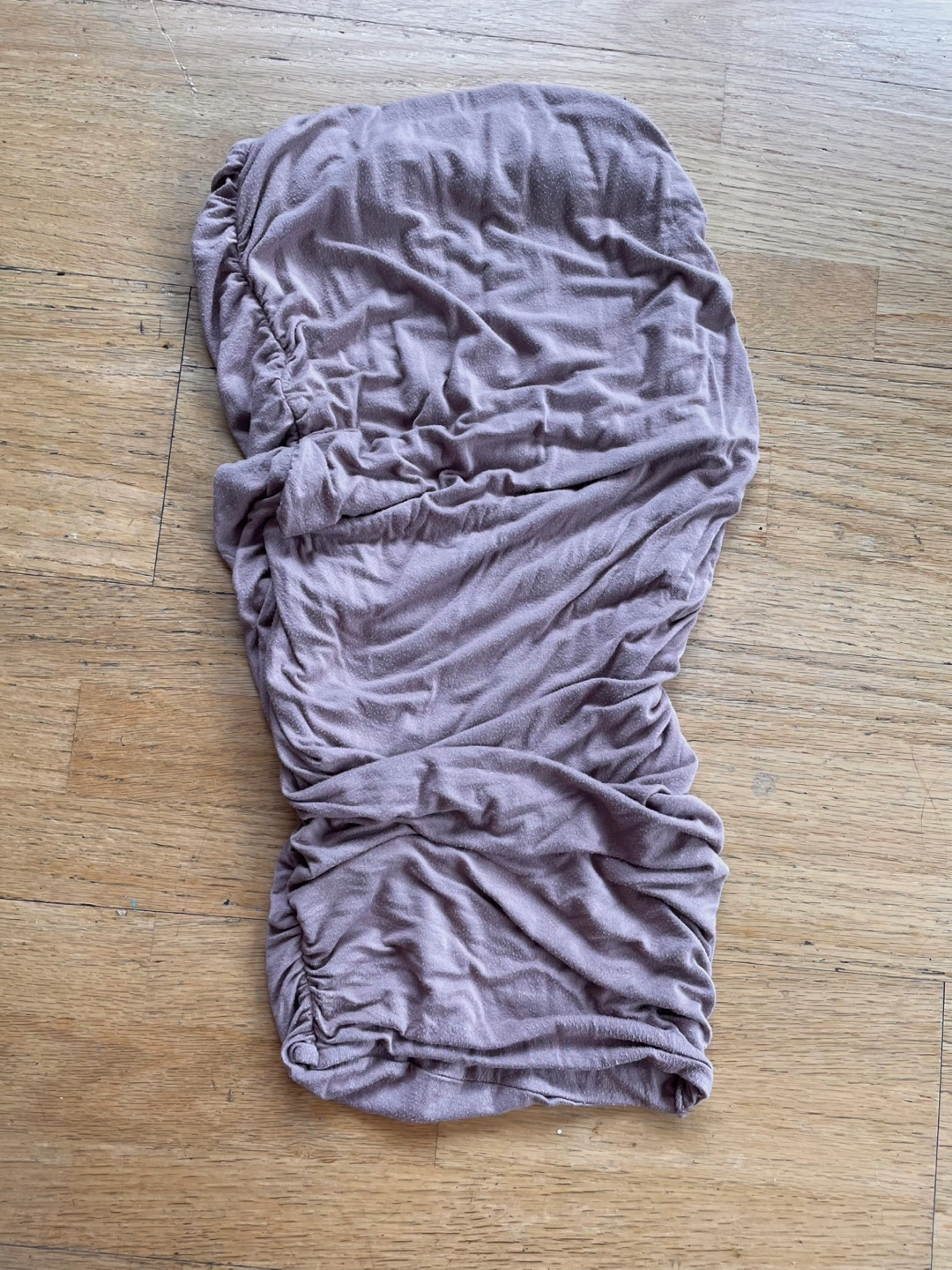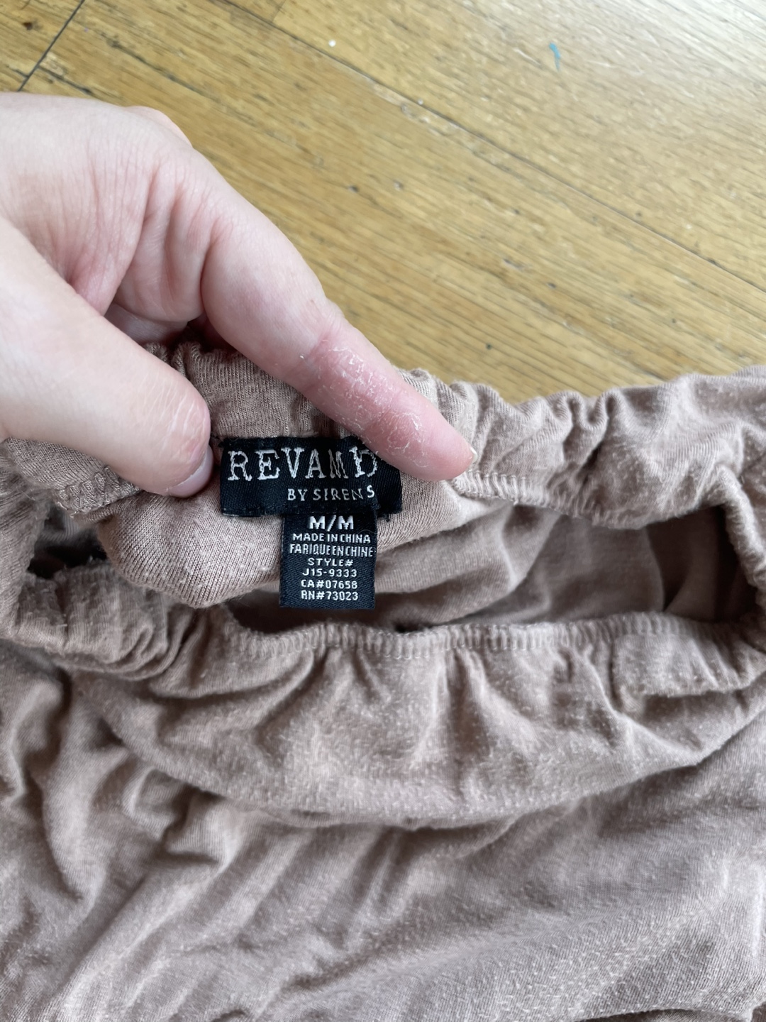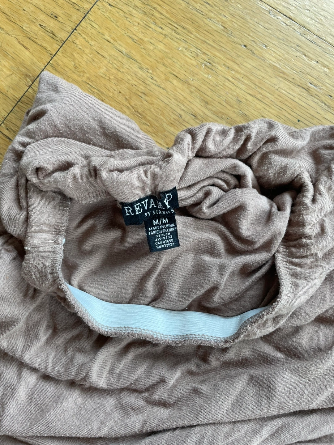 Size Medium. Quite stretchy and soft. Easily paired with tops to look like a dress. Quite pilled.