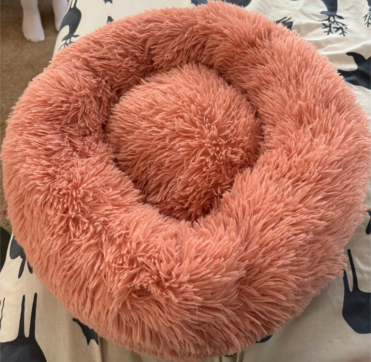 Selling a super comfy pink fluffy pet bed! It's in great condition and perfect for your furry friend to curl up in. The soft material will keep them cozy and warm. It's a great size for cats or small dogs