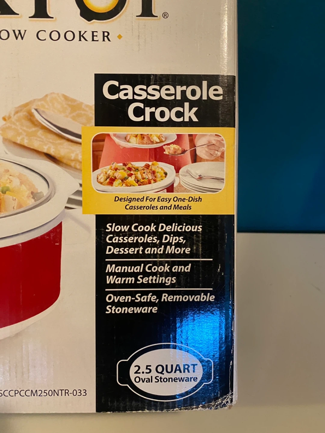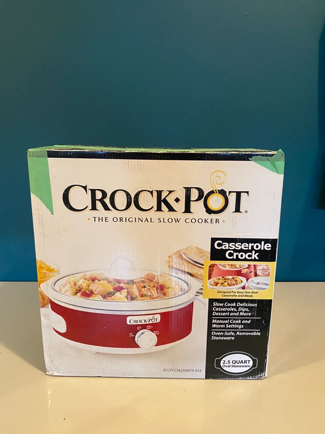 225Selling a Crock-Pot Casserole Crock slow cooker! It's a 2.5-quart oval stoneware model, perfect for slow cooking delicious casseroles, dips, desserts, and more. It has manual cook and warm settings, and the stoneware is dishwasher safe and removable