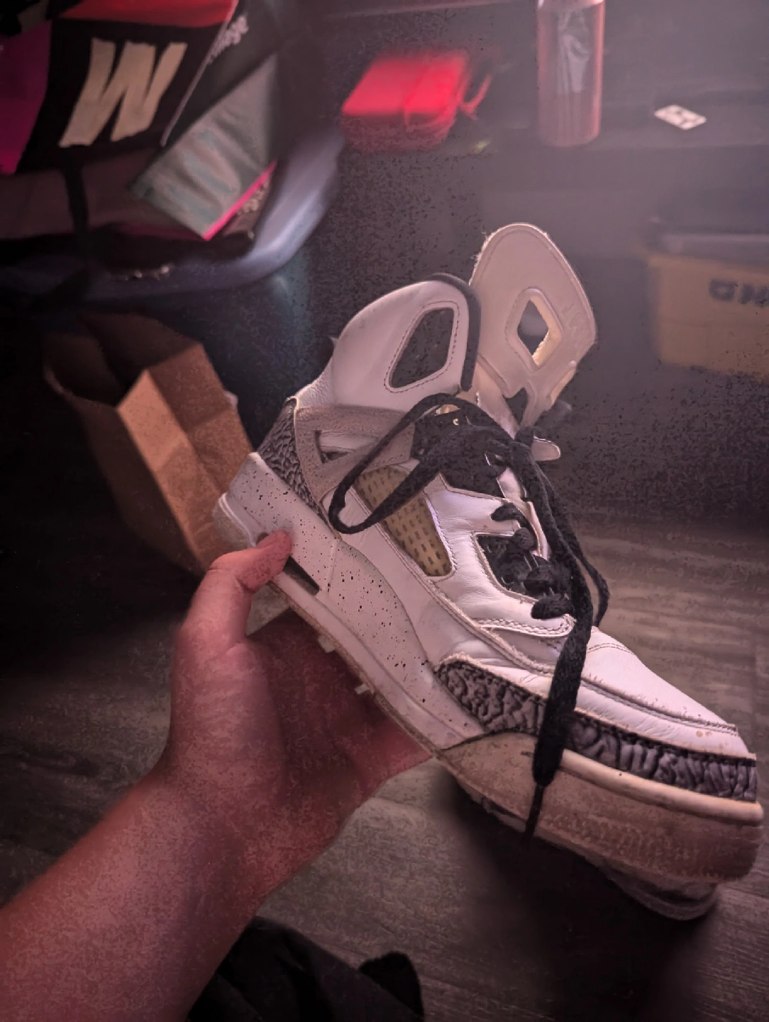 9Selling a pair of white Jordan high-top sneakers. They show some signs of wear, as you can see in the photos.