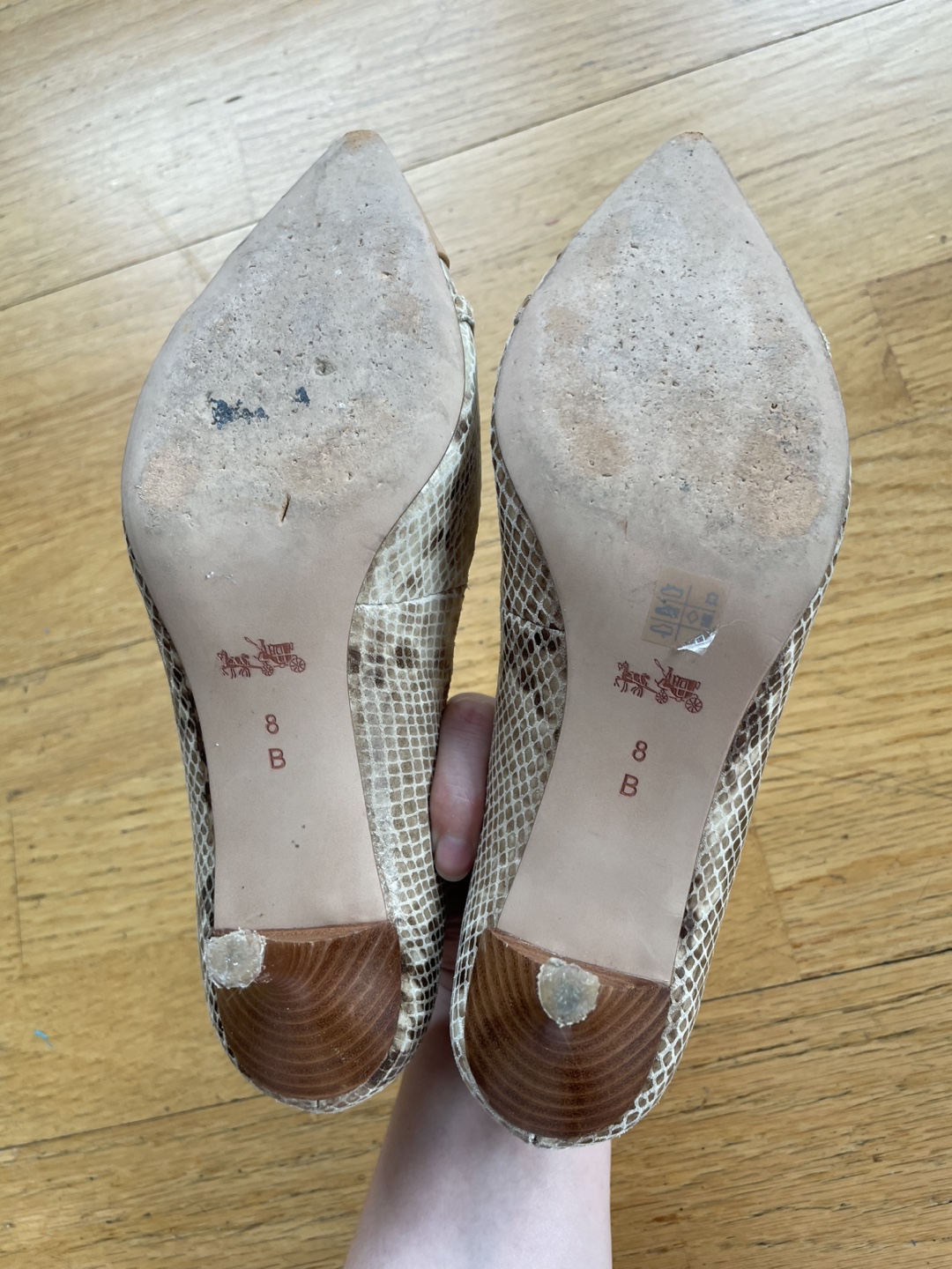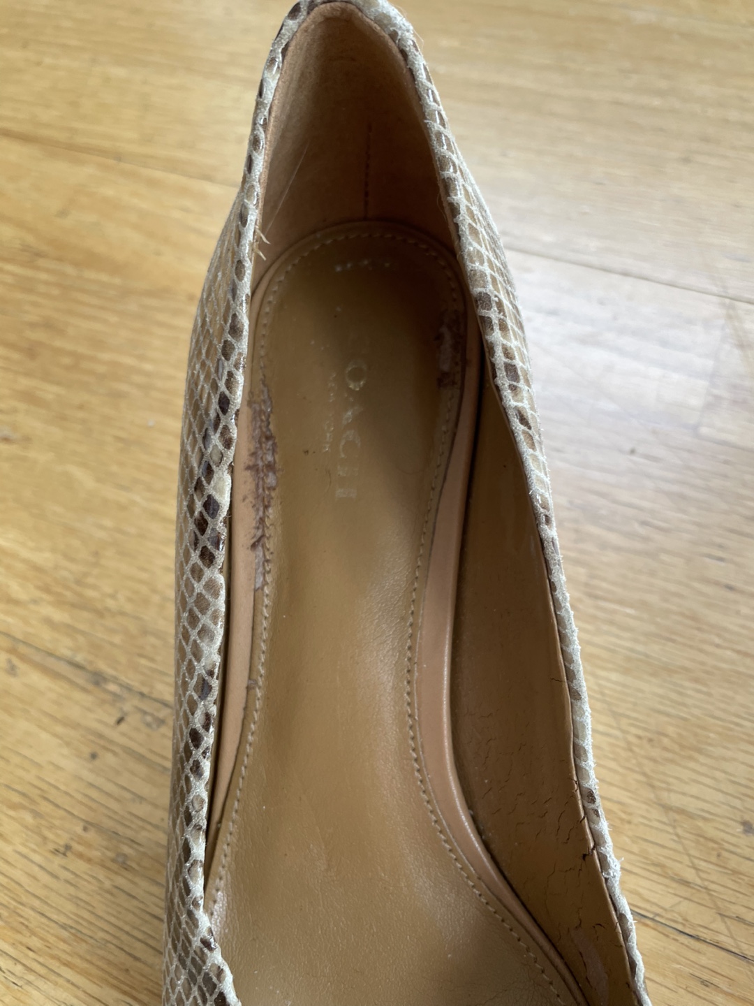 Size 38 / 8. Coach faux snake skin 1 inch heels.