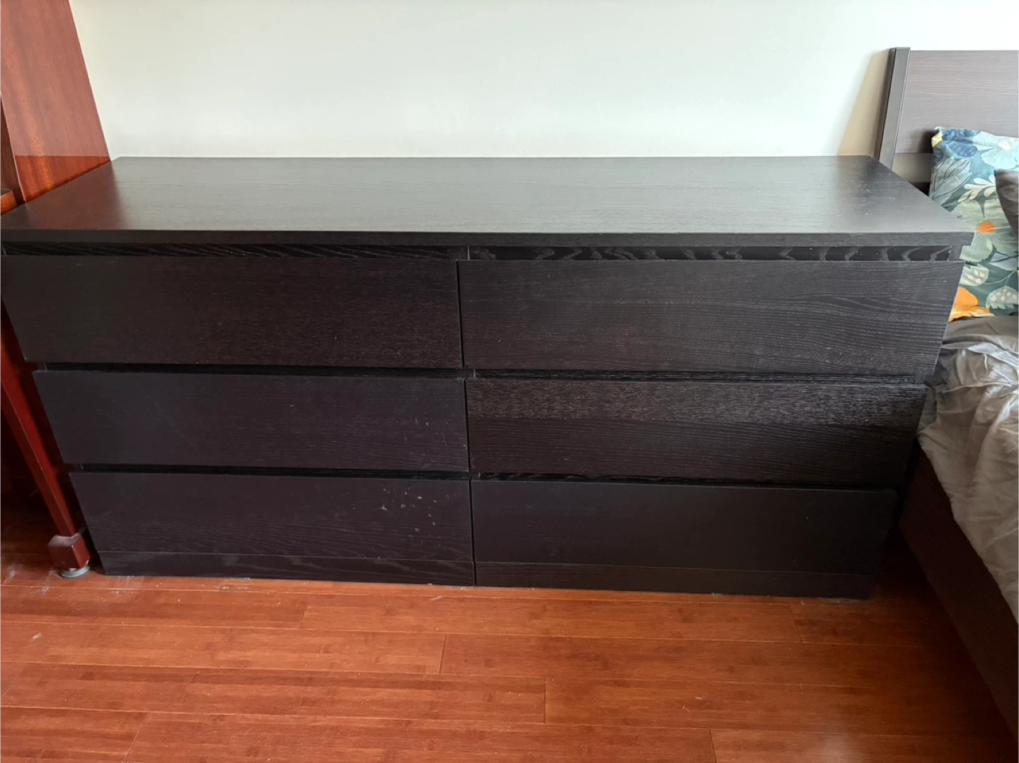 Selling a gently used 6-drawer IKEA Malm dresser in black-brown.