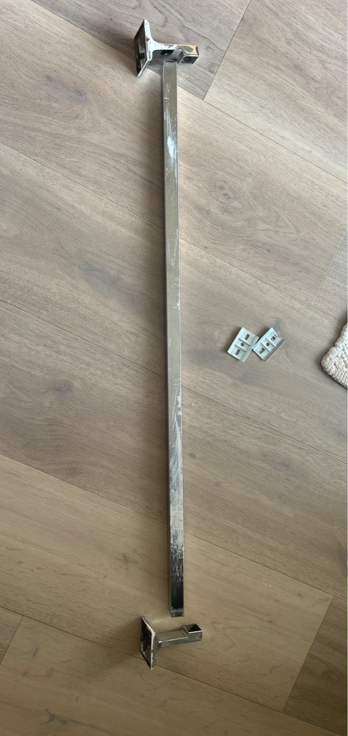 Giving away a towel bar with a chrome finish! It comes with the mounting hardware shown in the pictures. It has paint on it , as you can see in the photos. It should come off easily! 30” long
