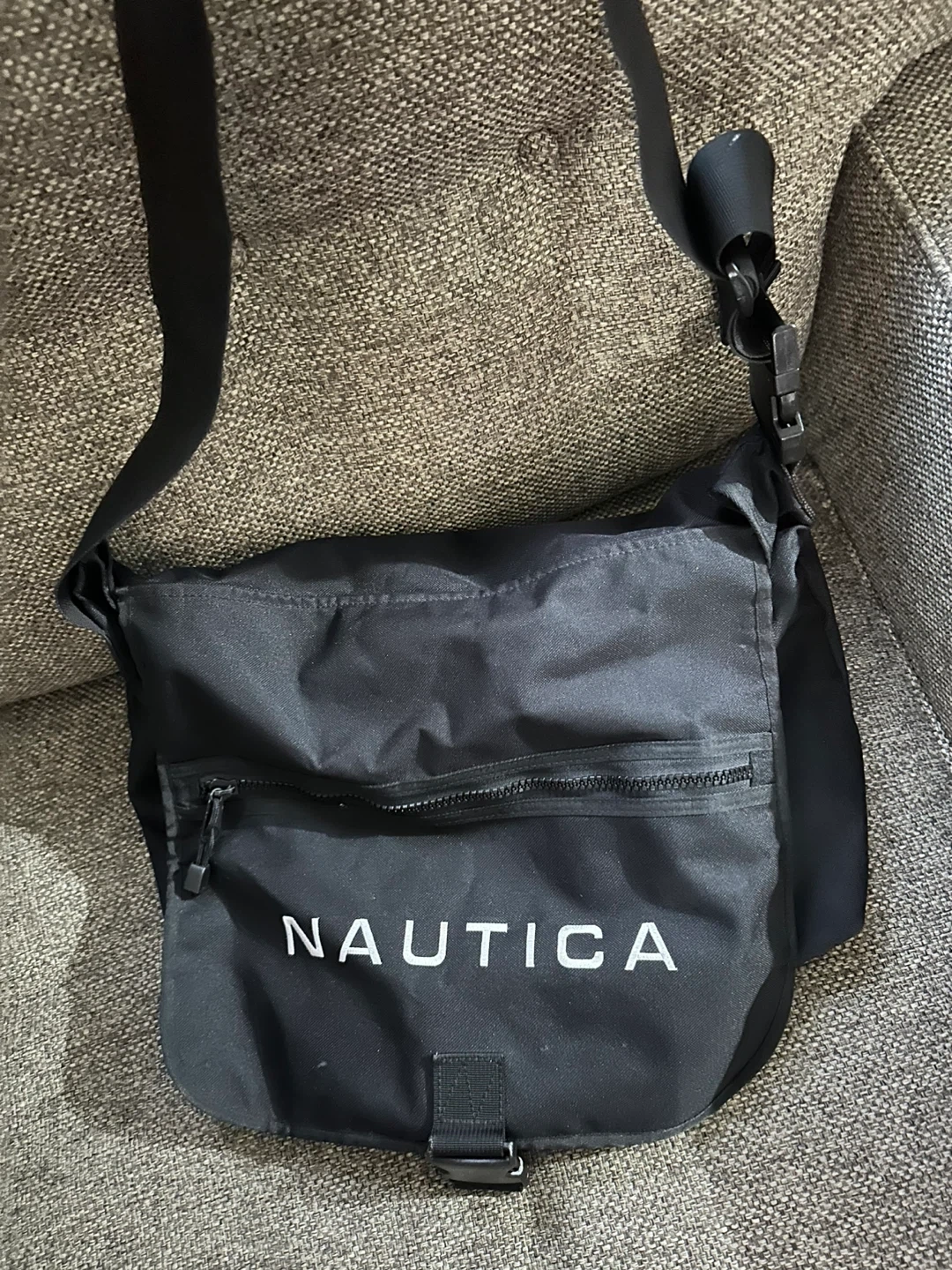 Selling a black Nautica messenger bag. It's in great condition and ready for a new owner! It features a front zipper pocket and an adjustable strap. Pick up only East 106th st and 1st ave