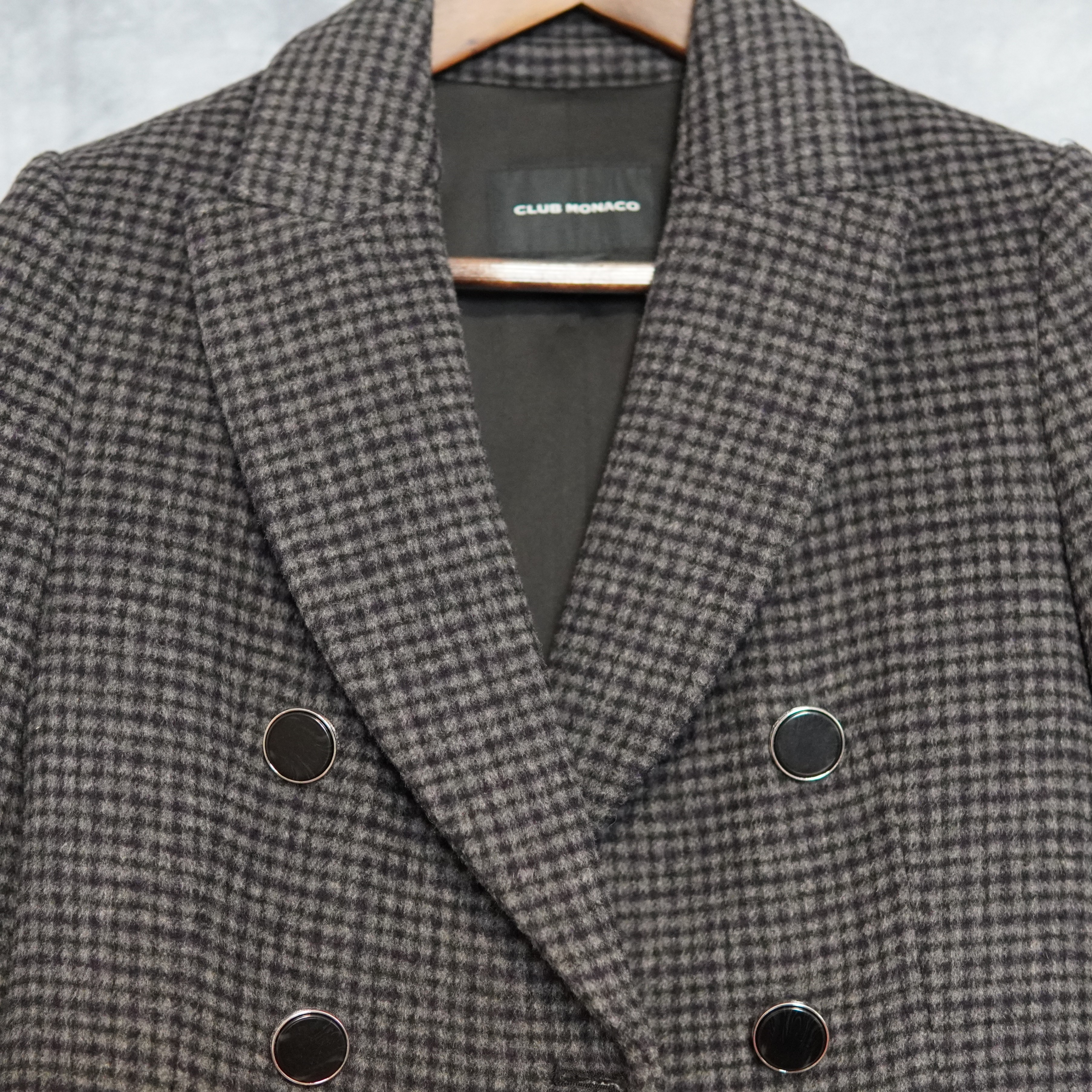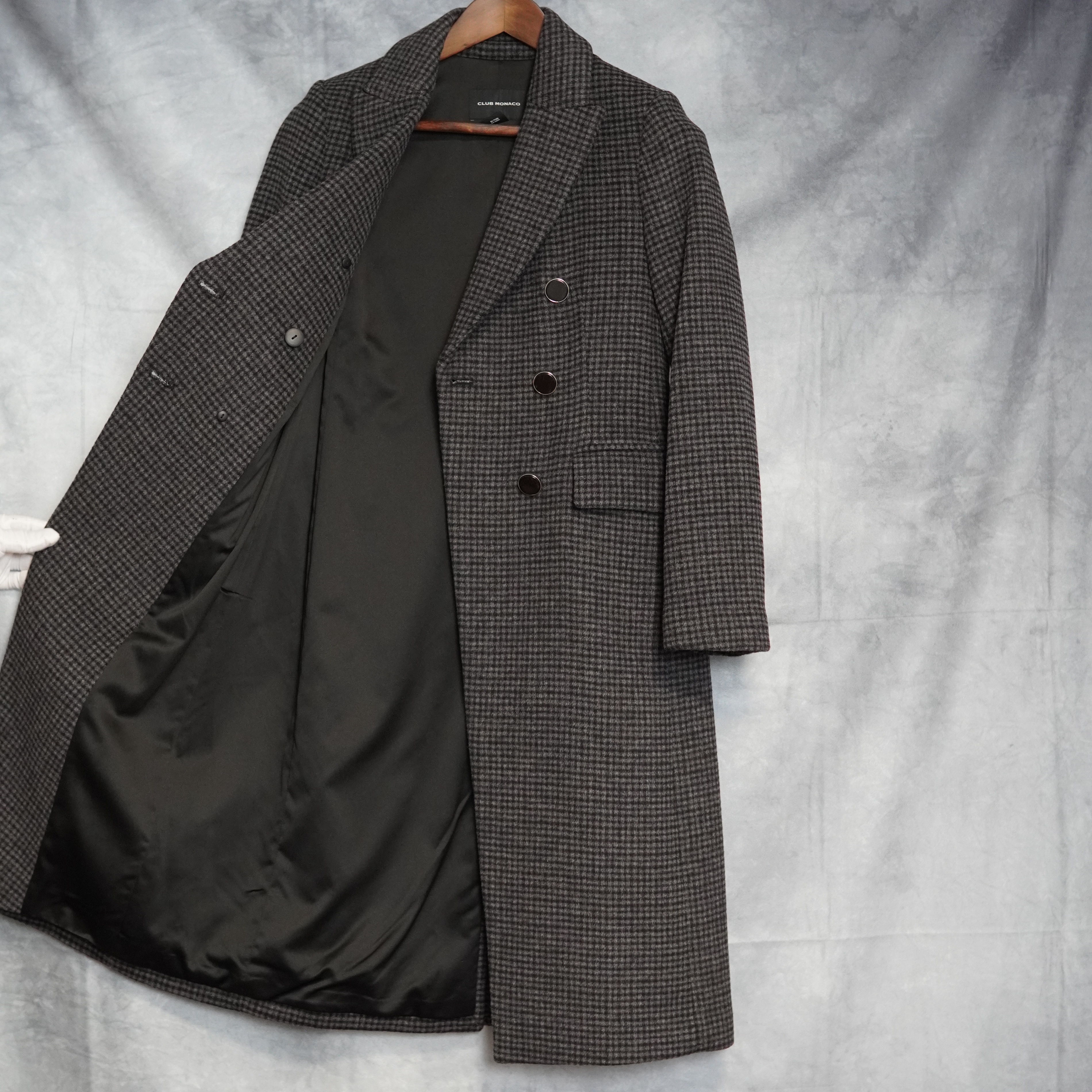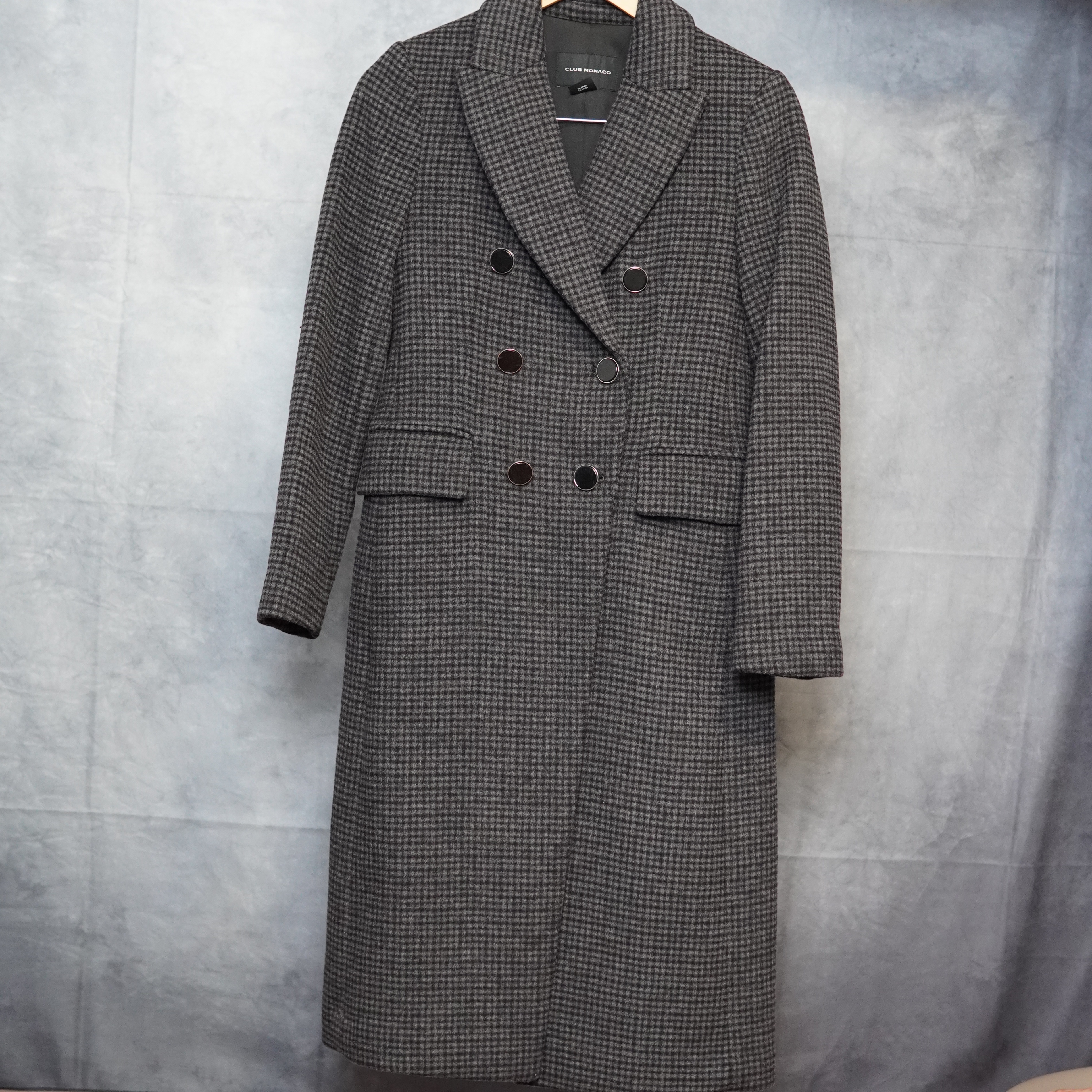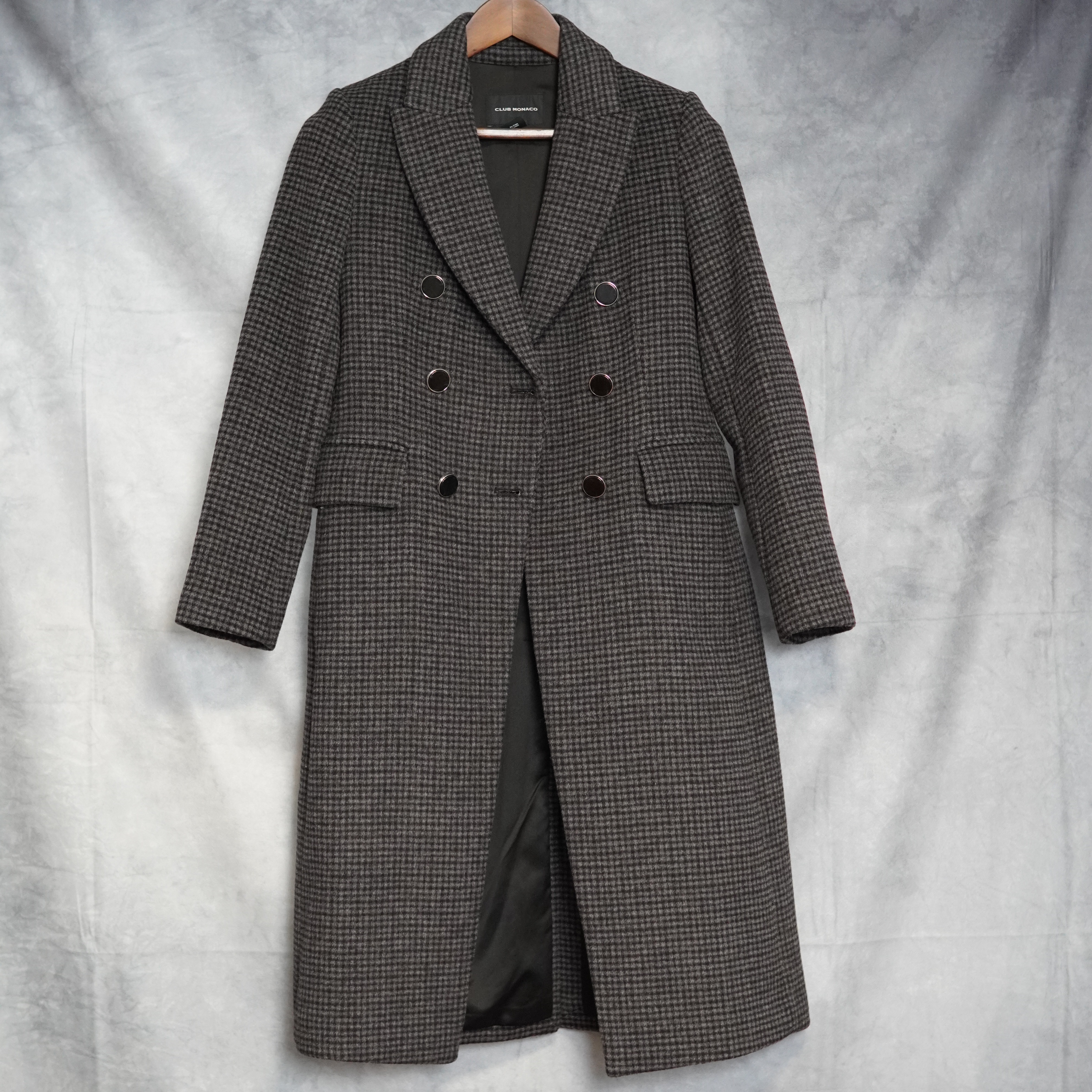 Club Monaco Jemma Plaid Wool Blend Coat XS Charcoal