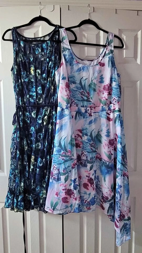 Both worn once, unfortunately I cut off the brand/size tag. Blue lace dress is from Laura, white floral dress is from Love & Legend. I'm a size 16/18 and both fit nicely.