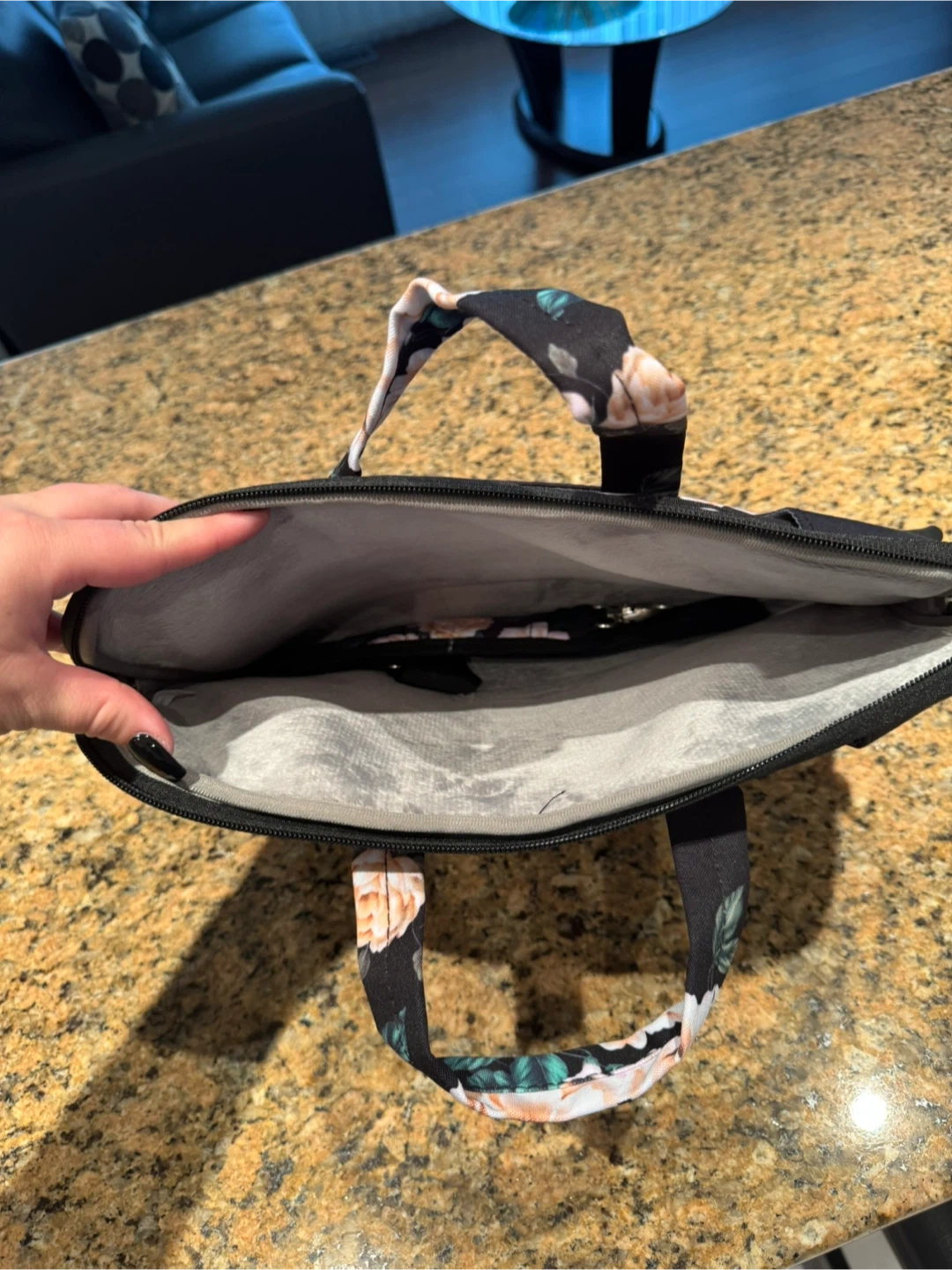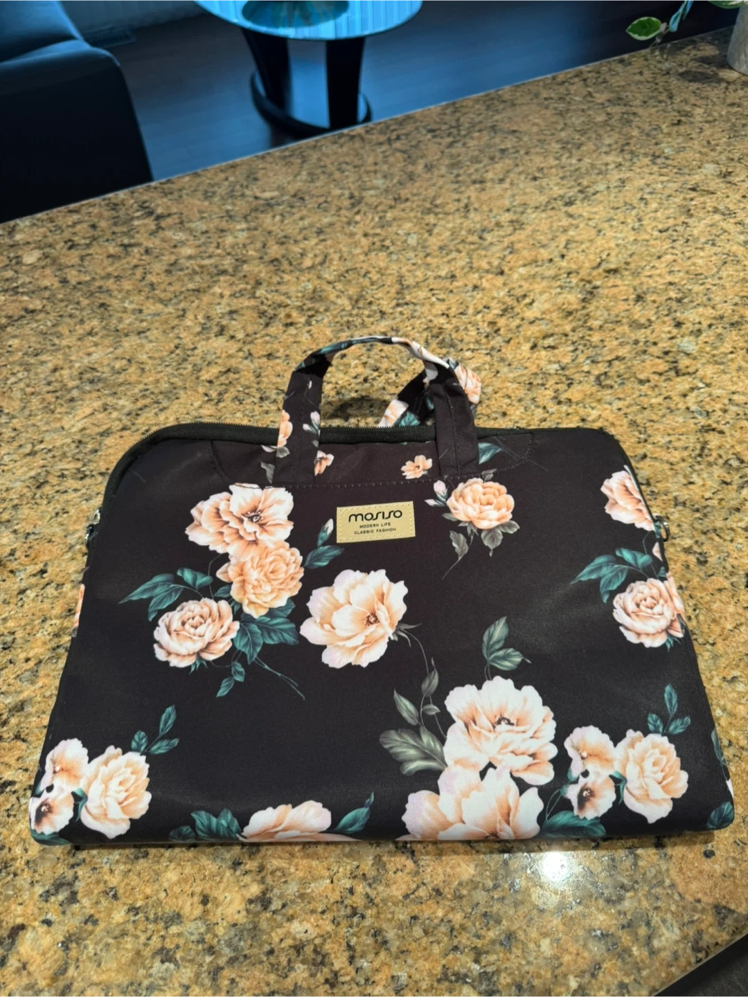 28Selling a cute Marvo laptop bag featuring a lovely floral design! It's in great condition and perfect for carrying your laptop around town. It has a handle for easy carrying and a zipper to keep everything secure. The bag is black with a floral pattern of peach and white flowers with green leaves. Amazon has it for $34.99 or 41.99 plus tax and shipping.