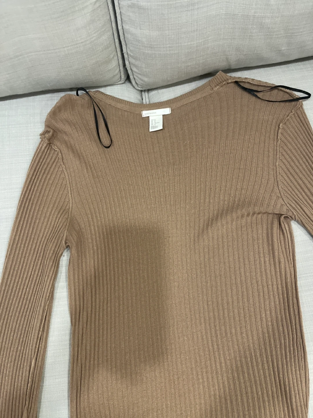 18Selling a cute H&M ribbed knit top in a lovely brown colour! It's a size M and in great condition. Perfect for layering or wearing on its own