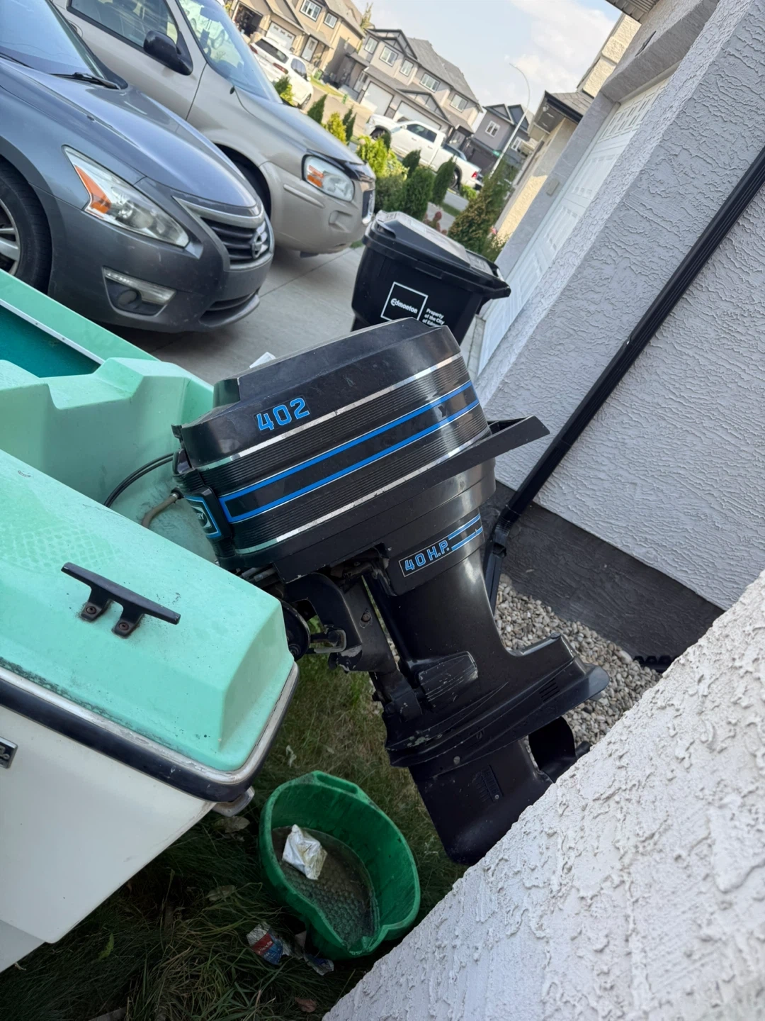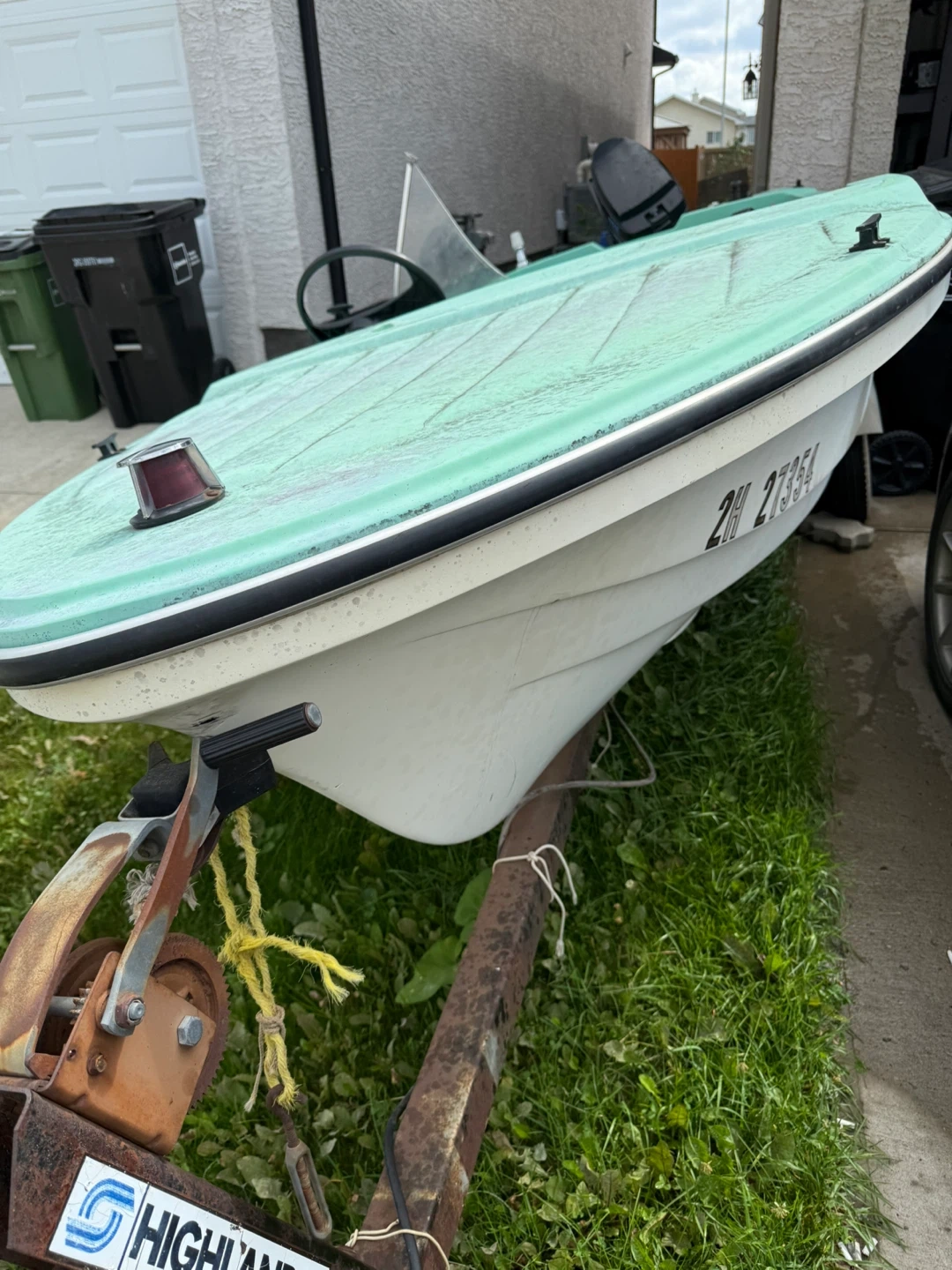 Selling a boat that's ready for the water! It comes with a 40HP motor. The boat is a nice mint green colour. Perfect for some fun on the lake this summer