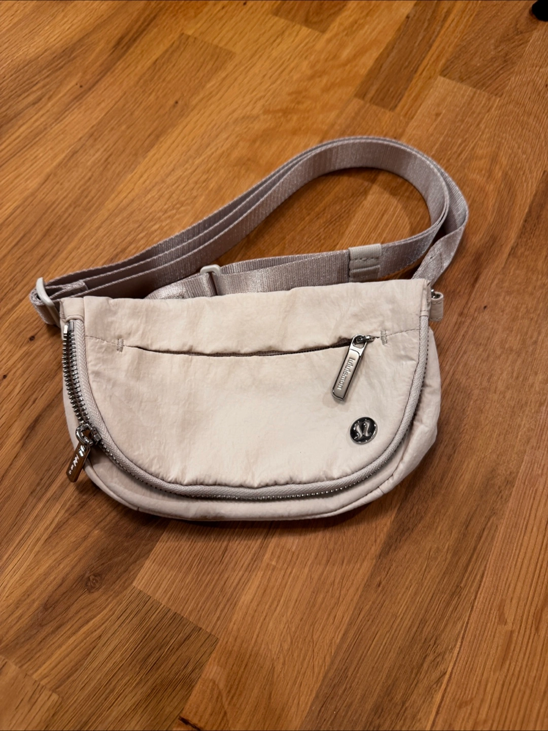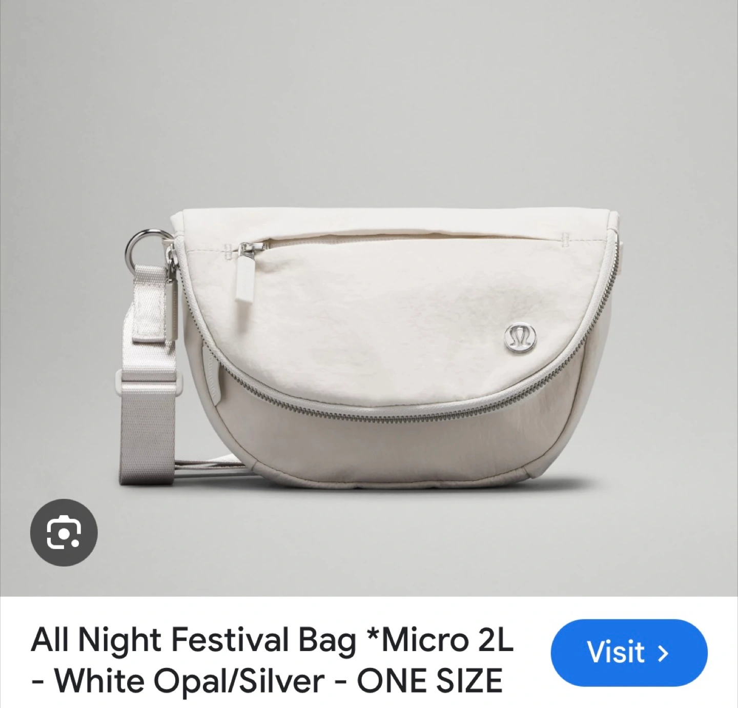 Selling a gently used Lululemon All Night Festival Bag *Micro 2L in White Opal/Silver! It's in great condition and perfect for festivals or everyday use. This bag is lightweight and portable, making it easy to carry around while keeping your essentials secure