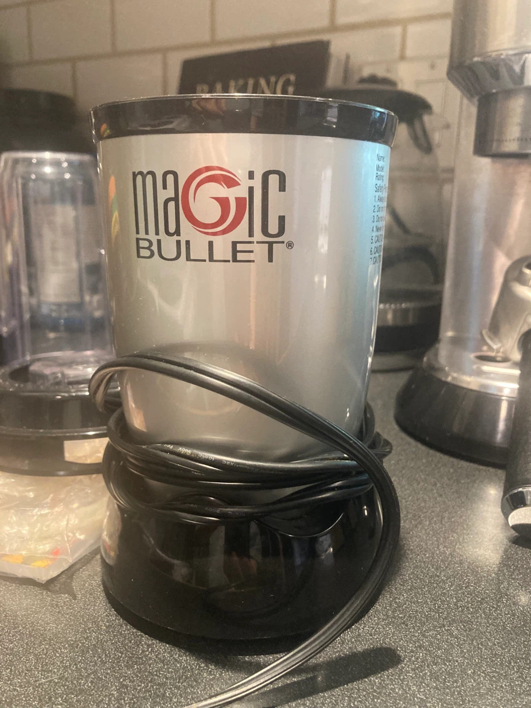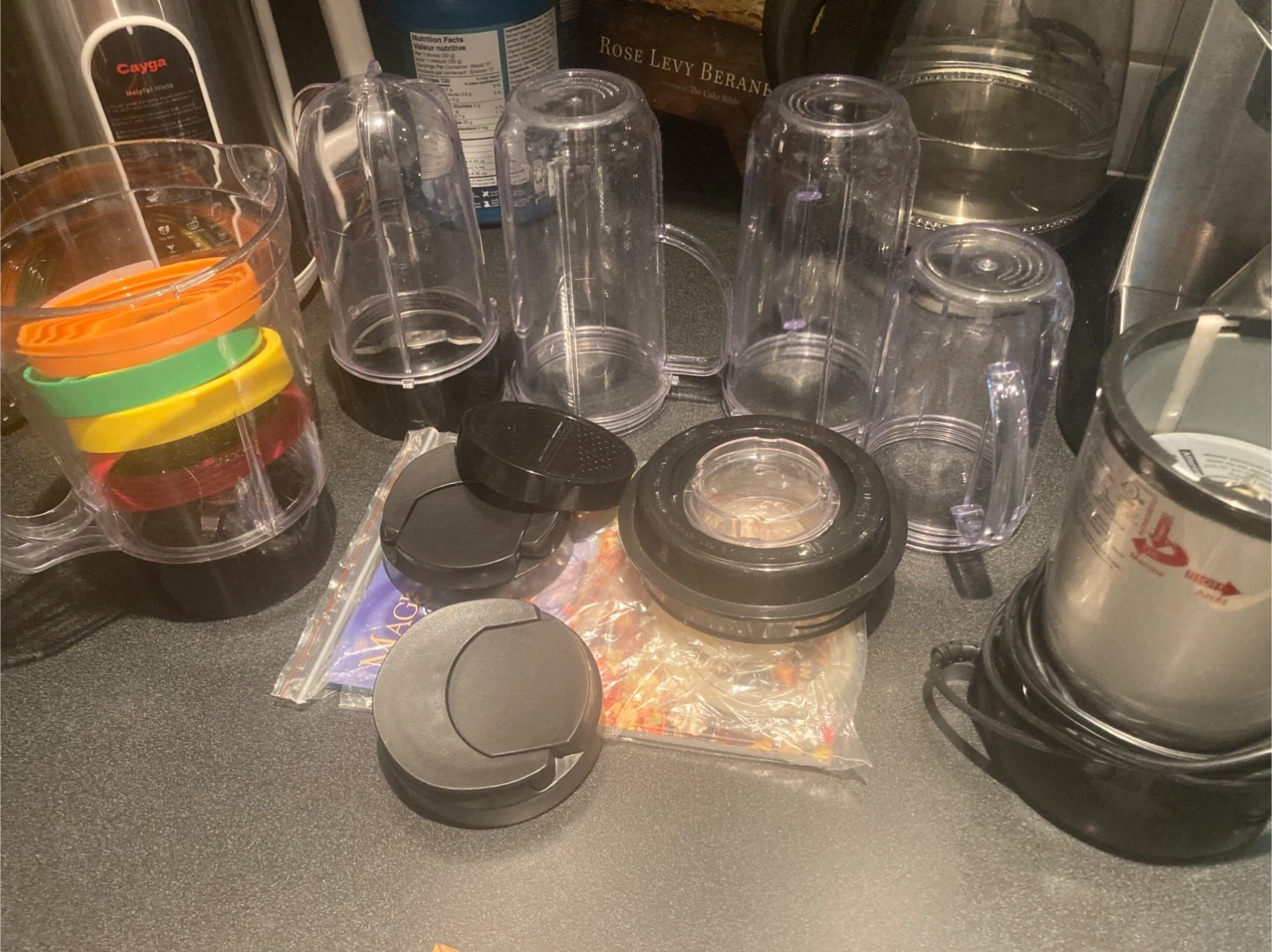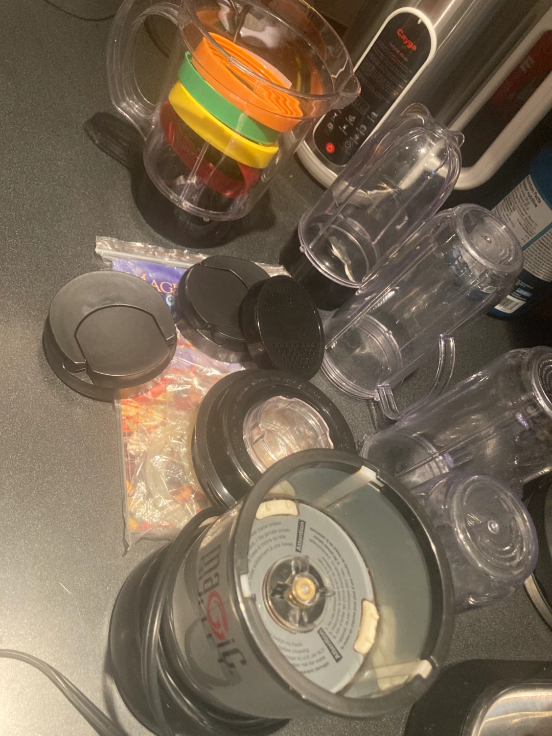 Selling a Magic Bullet blender with all the accessories you see in the photos! It's a great little blender for smoothies and quick food prep. Includes multiple cups, lids, and blades for different tasks. Perfect for someone looking for a compact and versatile blender option