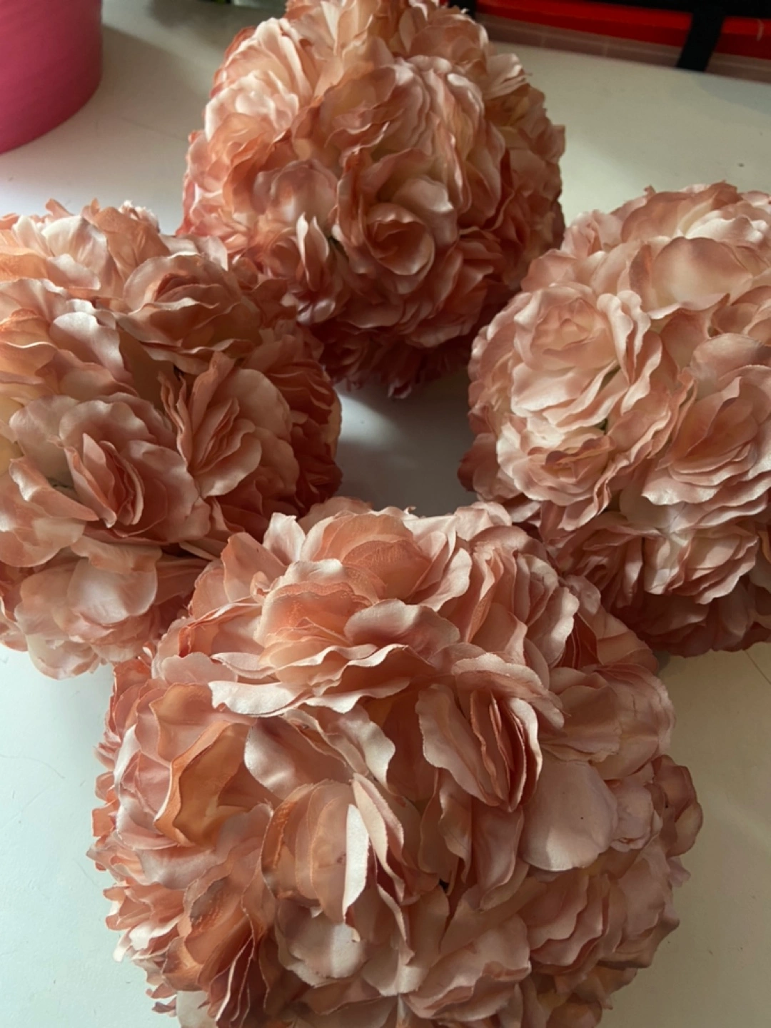 Selling a set of 4 blush-coloured floral kissing balls. They're perfect for adding a touch of elegance to any event or home decor.
