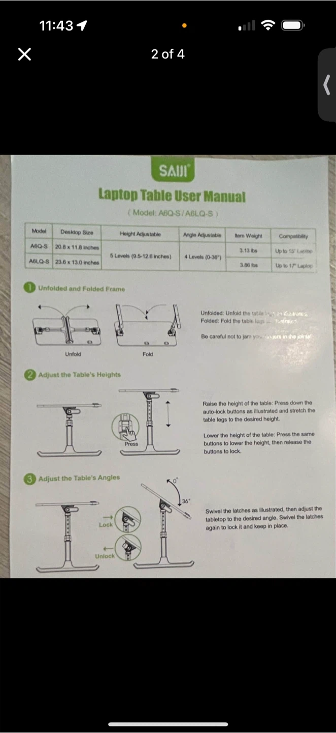 Brand new SAIJI A6LQ-S multifunction laptop table – perfect for working, studying, or watching movies from bed, couch, or floor.