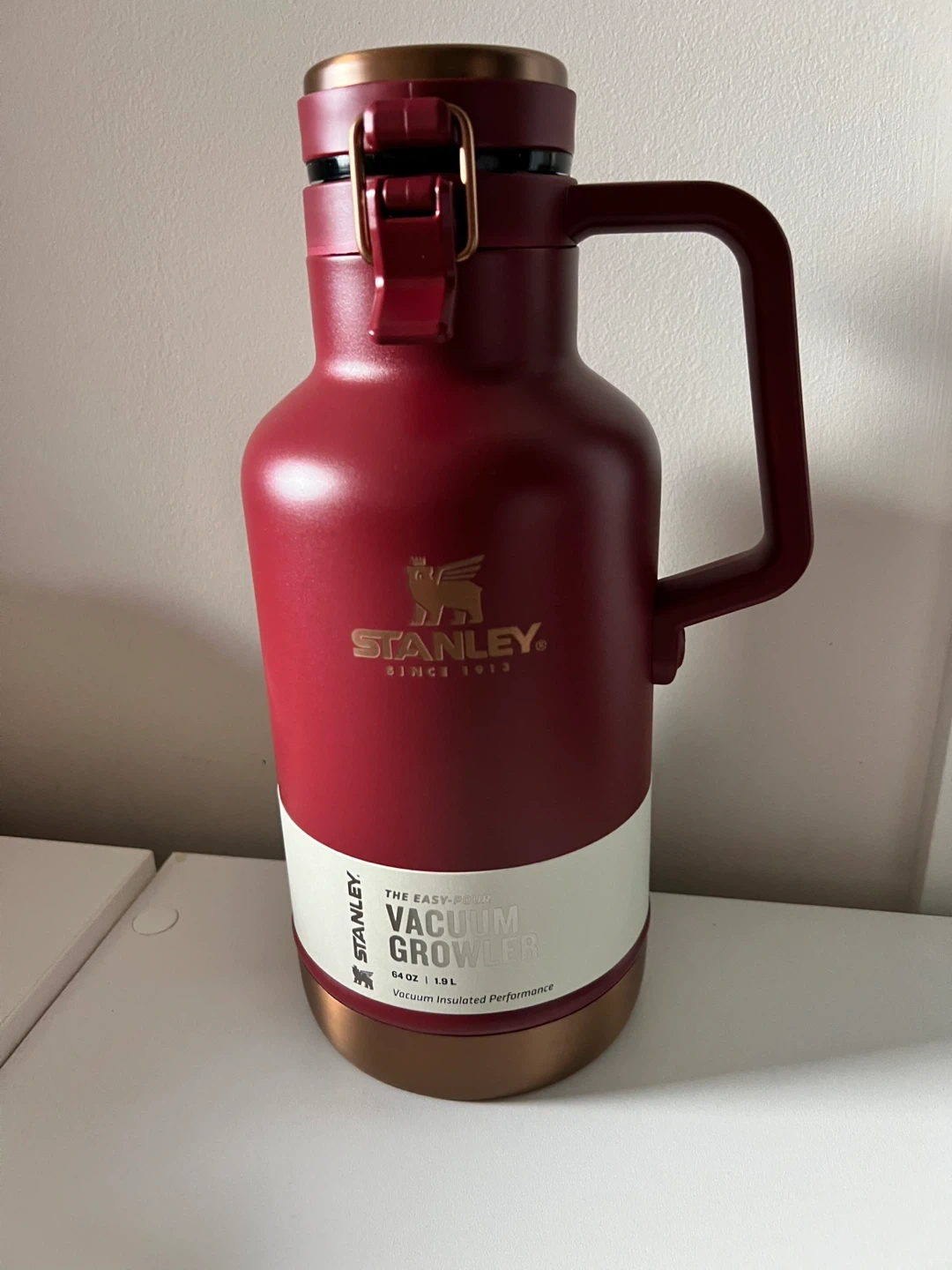 Keep your beverages cold or hot with this Stanley Vacuum Growler! It's a 64oz vacuum insulated growler, perfect for any adventure. It features 18/8 stainless steel construction and is dishwasher safe. Plus, it's leakproof and packable for easy transport