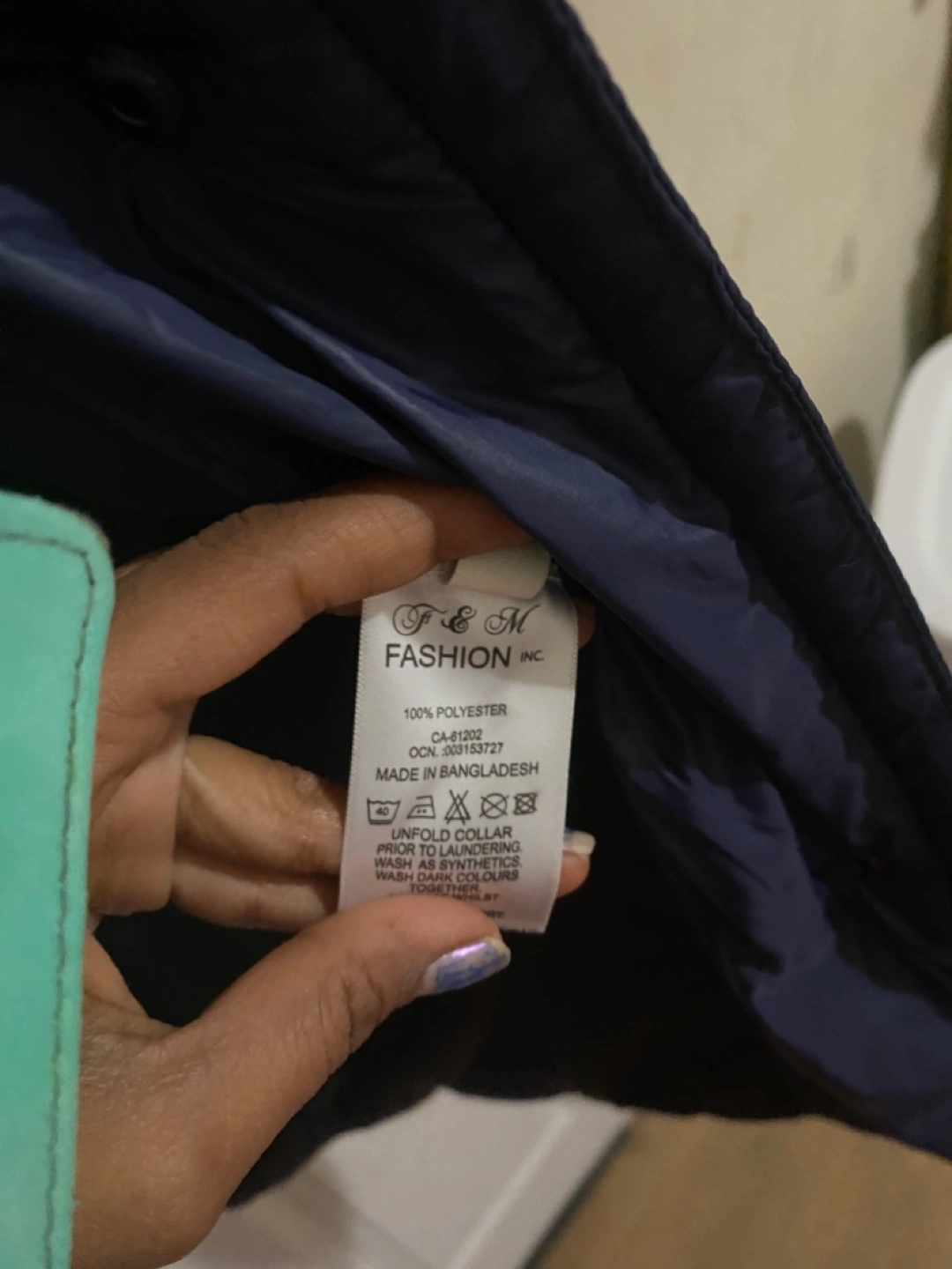 Selling a stylish puffer coat from F&M Fashion Inc! It's a lovely blue colour and made of 100% polyester. It's in new and ready to keep you warm this winter!