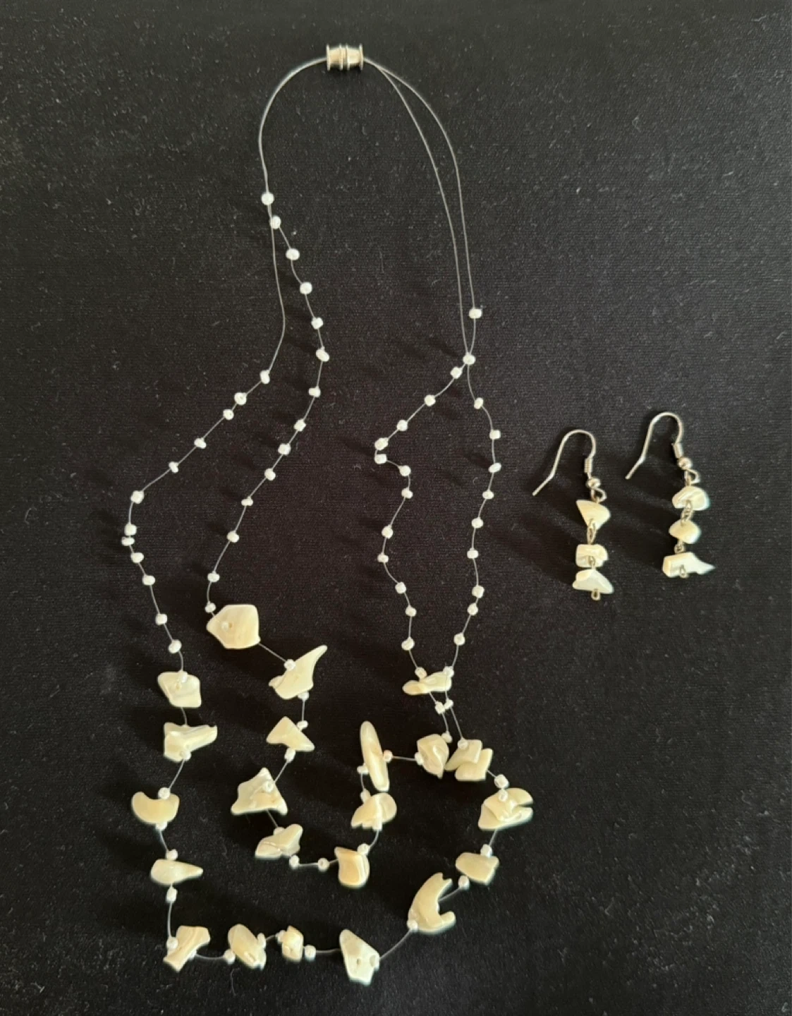 Selling a charming shell necklace and earring set perfect for adding a touch of natural elegance to any outfit