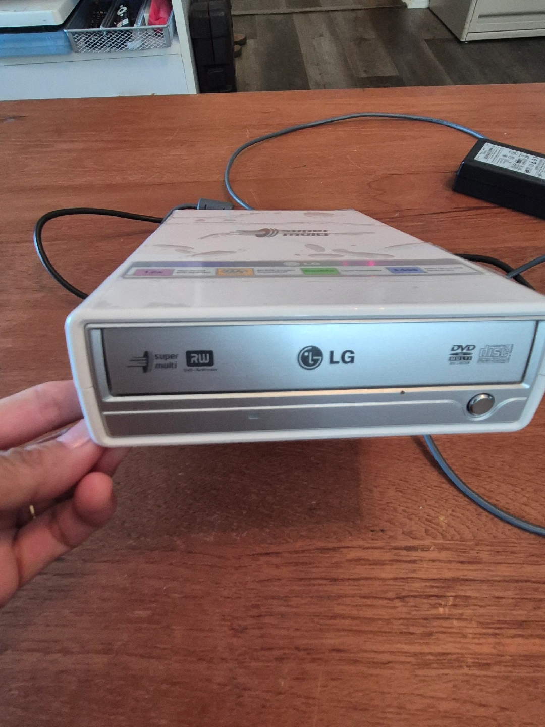 Selling an LG Super Multi DVD Rewriter, model GSA-S1200. It's an external drive that supports 12x speed DVD recording and is compatible with all DVD formats. It can store up to 8.5GB (DVD+R DL). Manufactured in August 2004